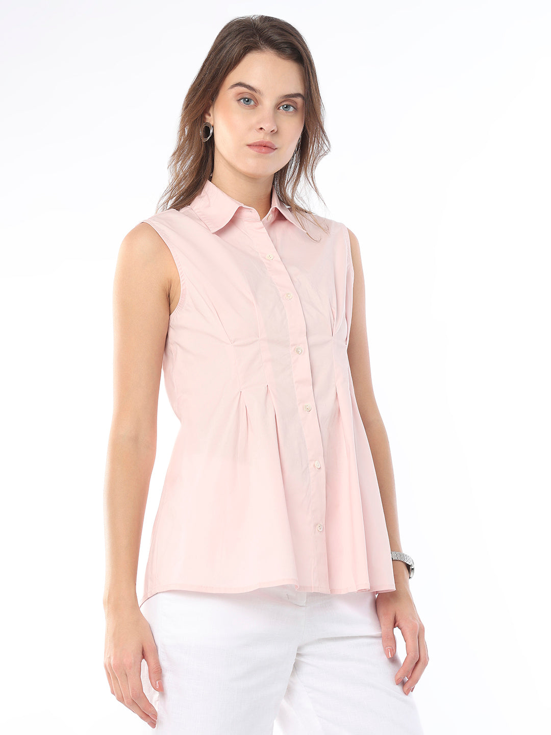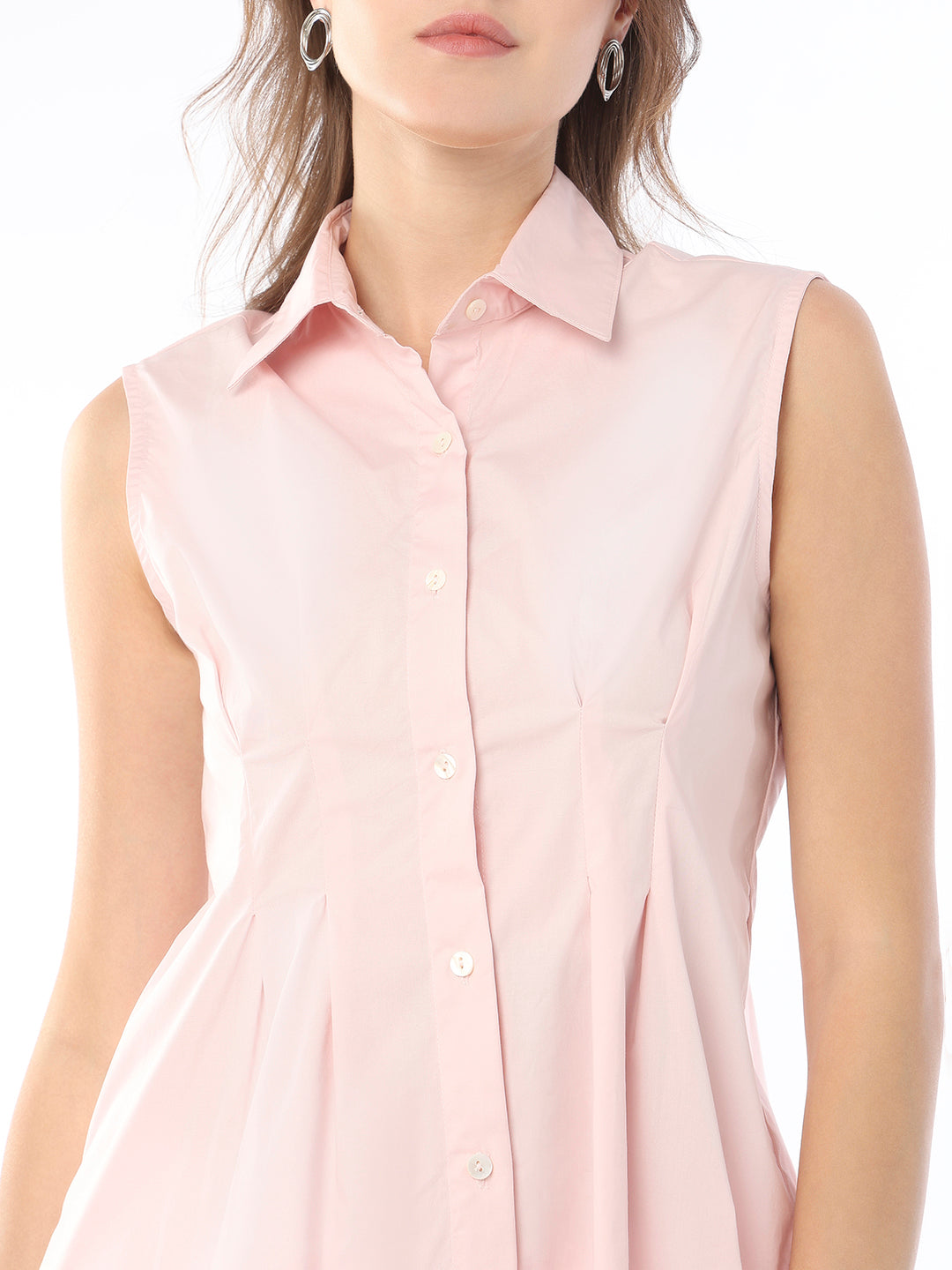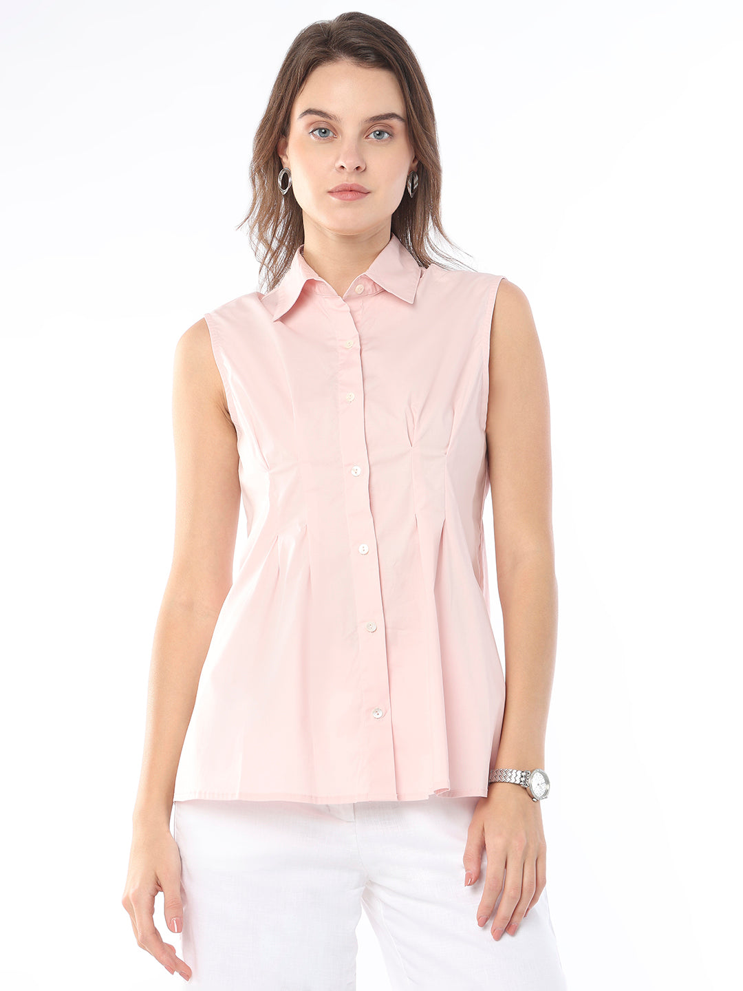 Amelia Pink Sleeveless Cotton Formal Shirt