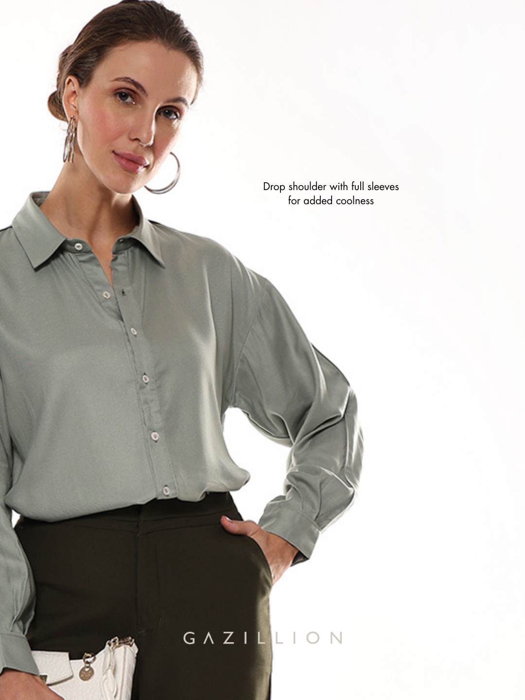 The Angel Formal Shirt, made in soft viscose with drop-shoulder & full sleeves, features a loose, long silhouette that blends comfort & style. When you wear it, you embody effortless elegance, perfect for the modern workplace.