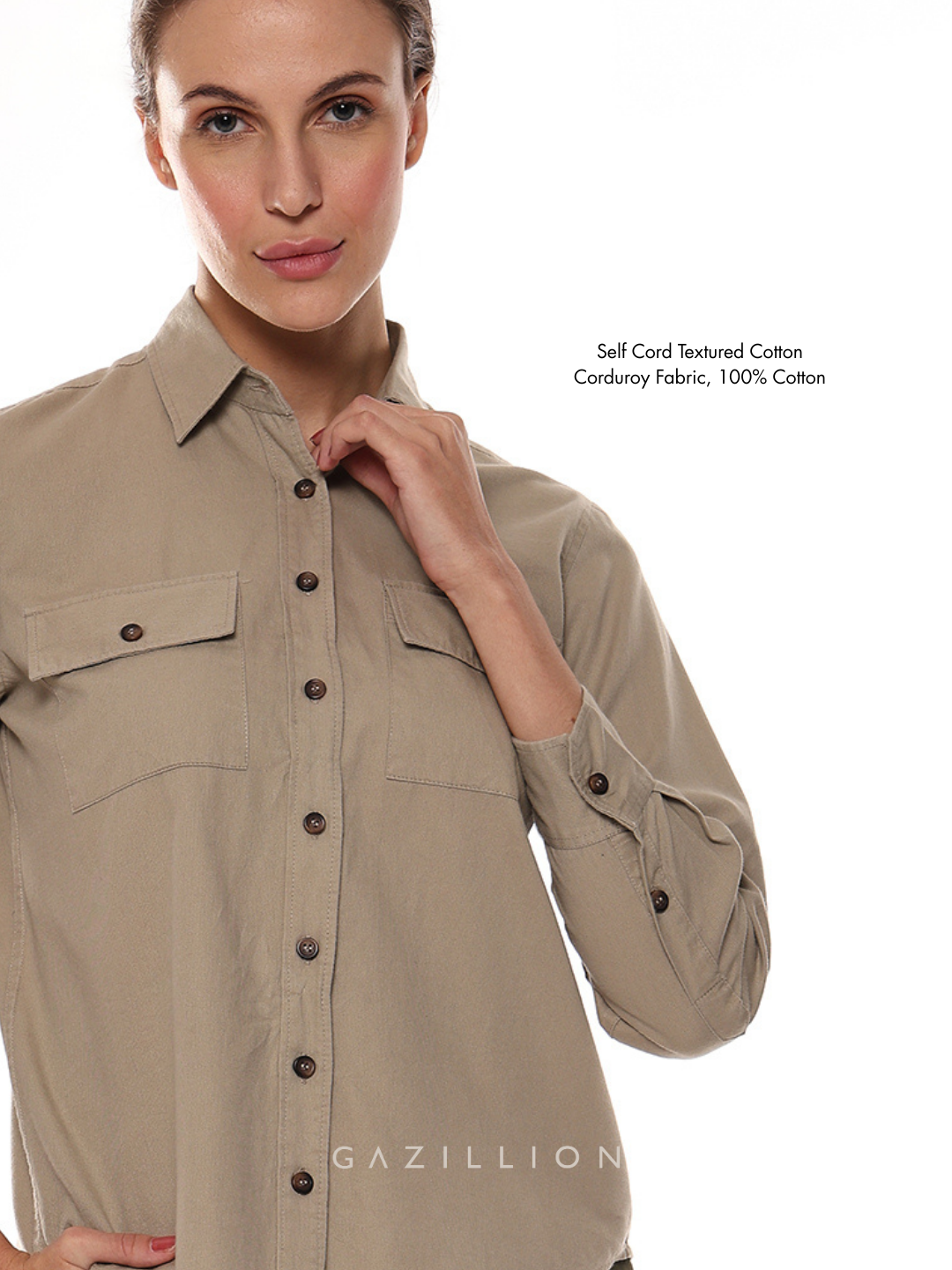The Analia Shirt, is a classic women's utility shirt in mini cord corduroy cotton, is a staple piece that remains forever in vogue. Wearing it feels like stepping into your power, ready to own the spotlight.