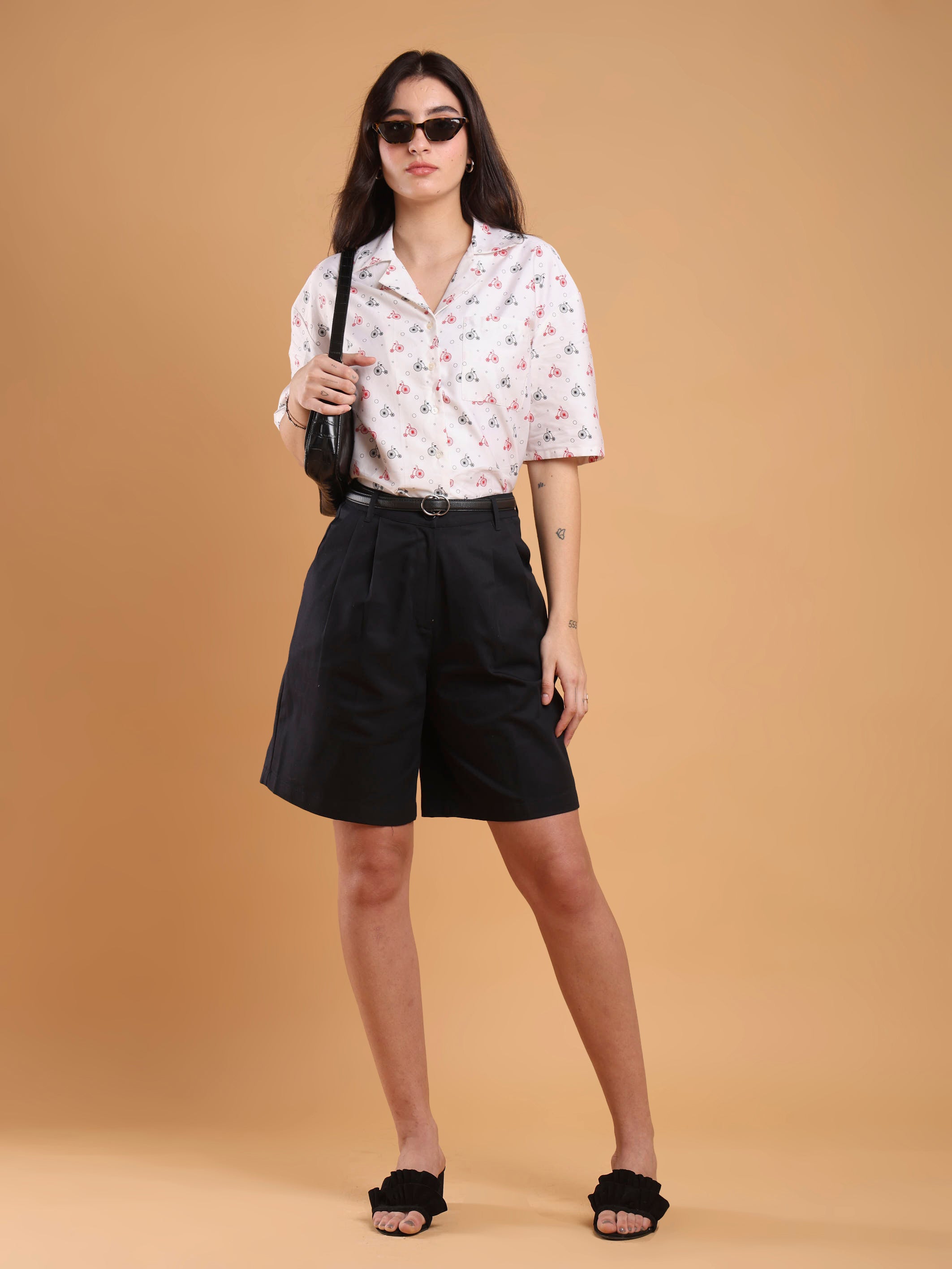 The Cecelia Quirky White Printed Cropped Shirt, featuring a quirky print on soft cotton, is the perfect blend of casual and chic. With its short sleeves and cropped silhouette, it’s designed to make you feel effortlessly stylish and confident, no matter the occasion.