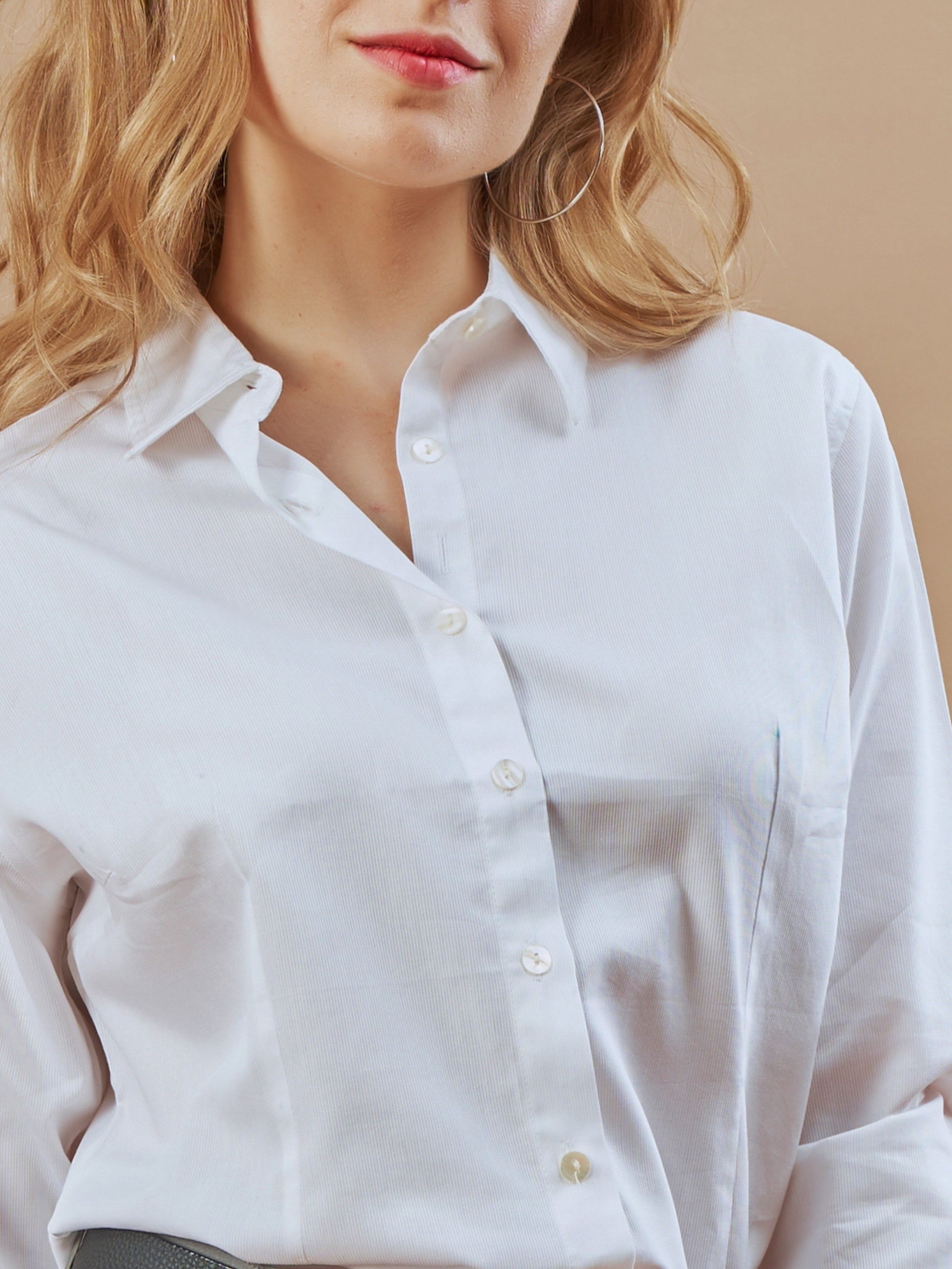 Alvina Blue & White Striped Cotton Uitlity Shirt