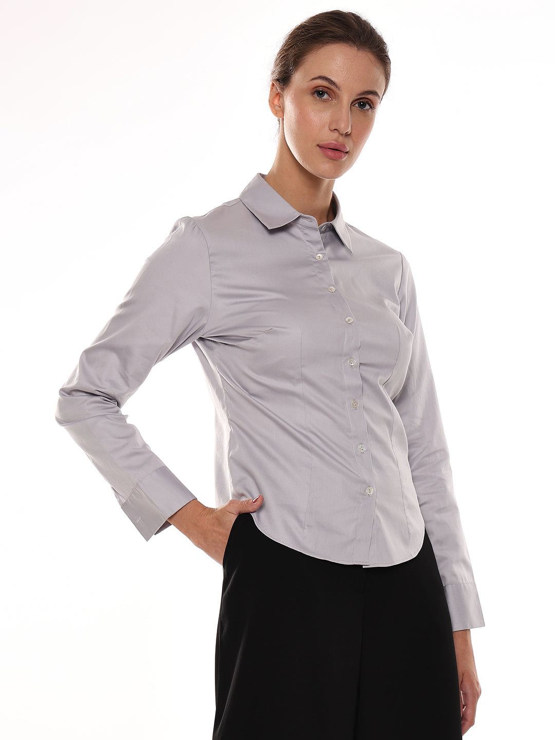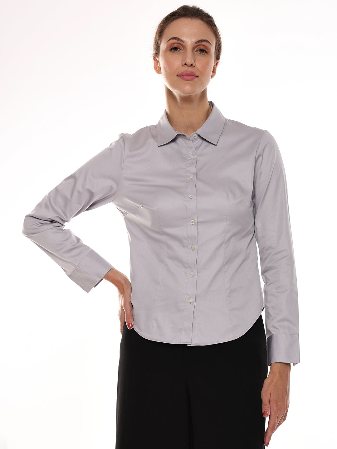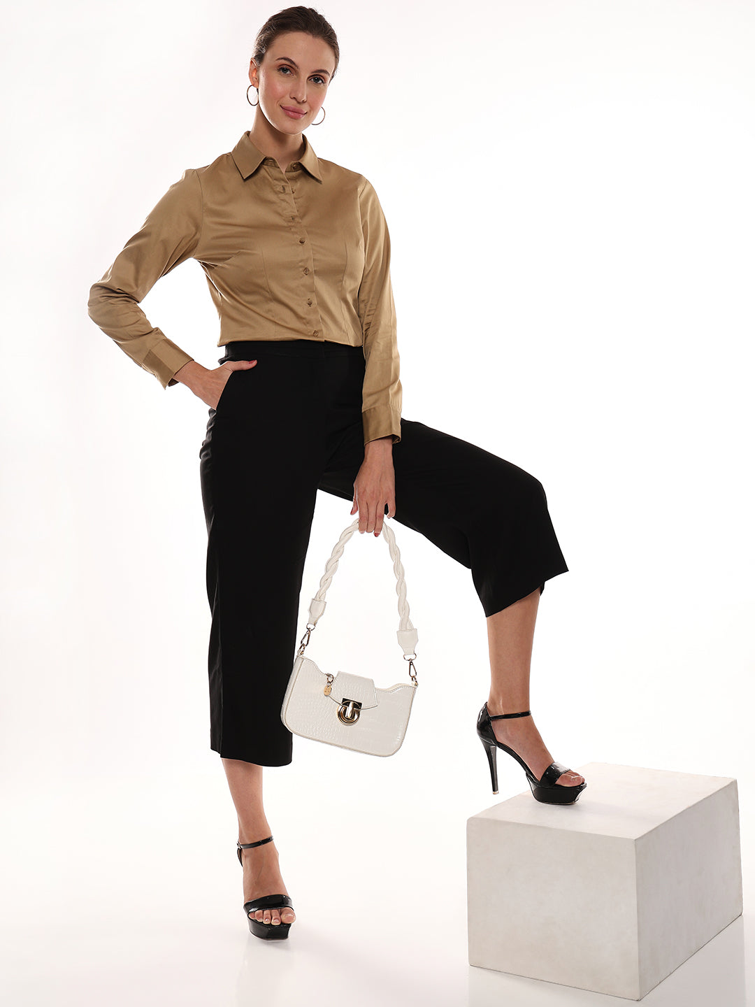 Cecelia White Printed Short Sleeves Cropped Cotton Shirt