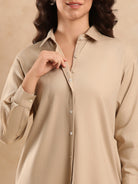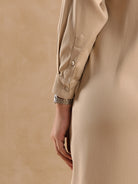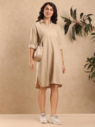 The Dante Office Shirt Dress is a perfect blend of elegance and coolness. This long shirt dress in a warm olive green is an ideal choice as work wear- Effortlessly chic, it redefines office fashion.