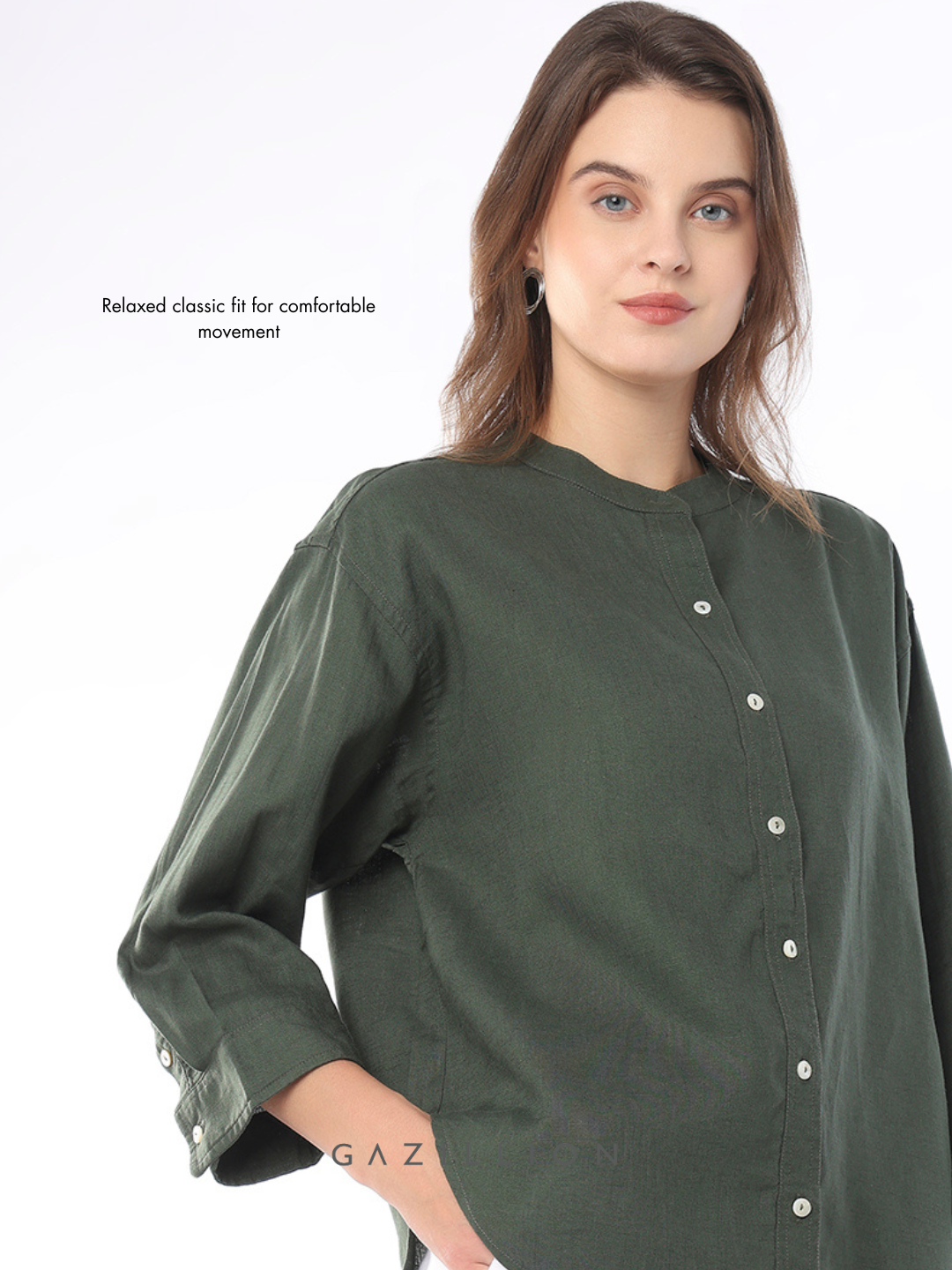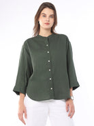 FOREST COTTON LINEN FORMAL SHIRT FOR WOMEN