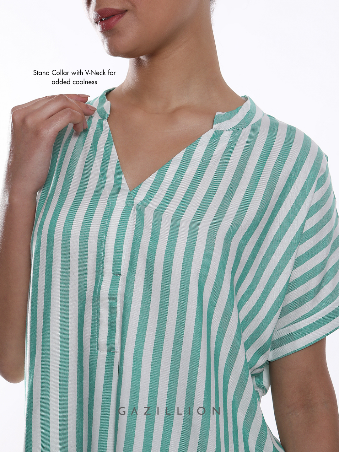 - Stand Collar with V-Neck for added coolness