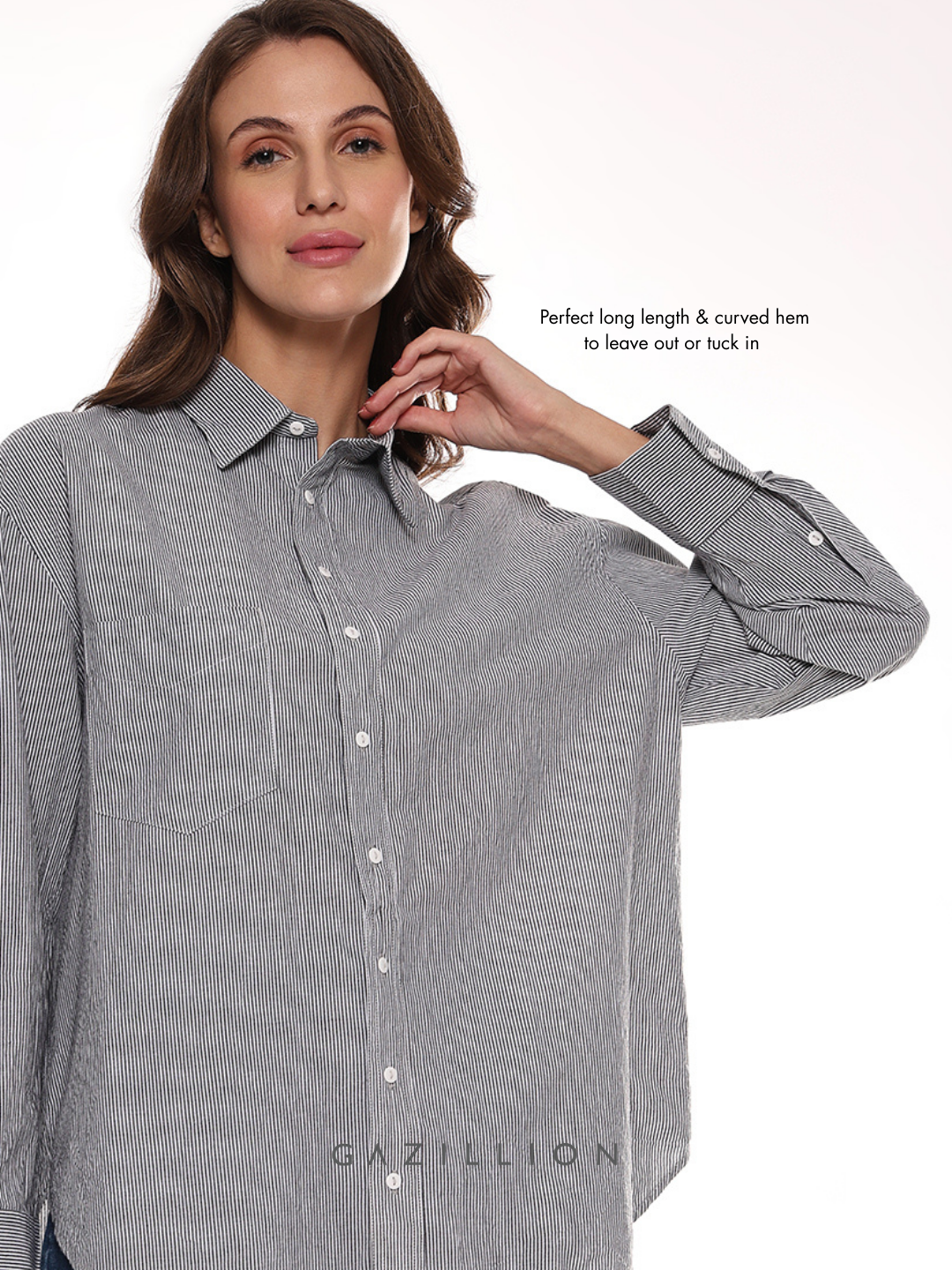 - Perfect long length & curved hem to leave out or tuck in