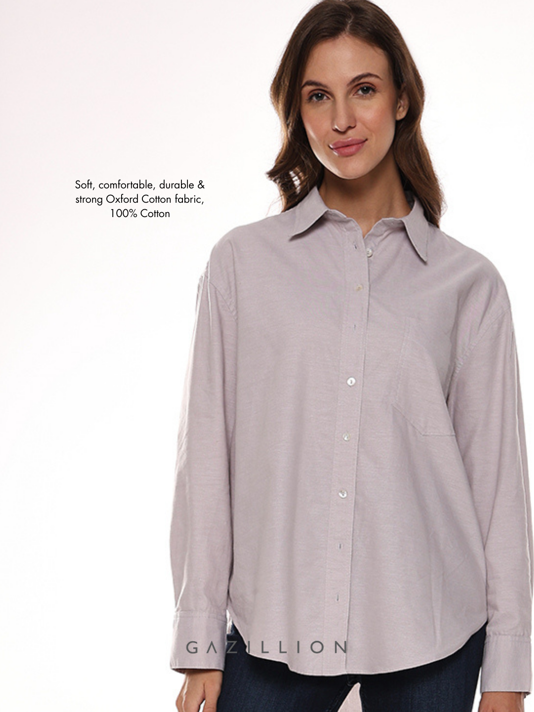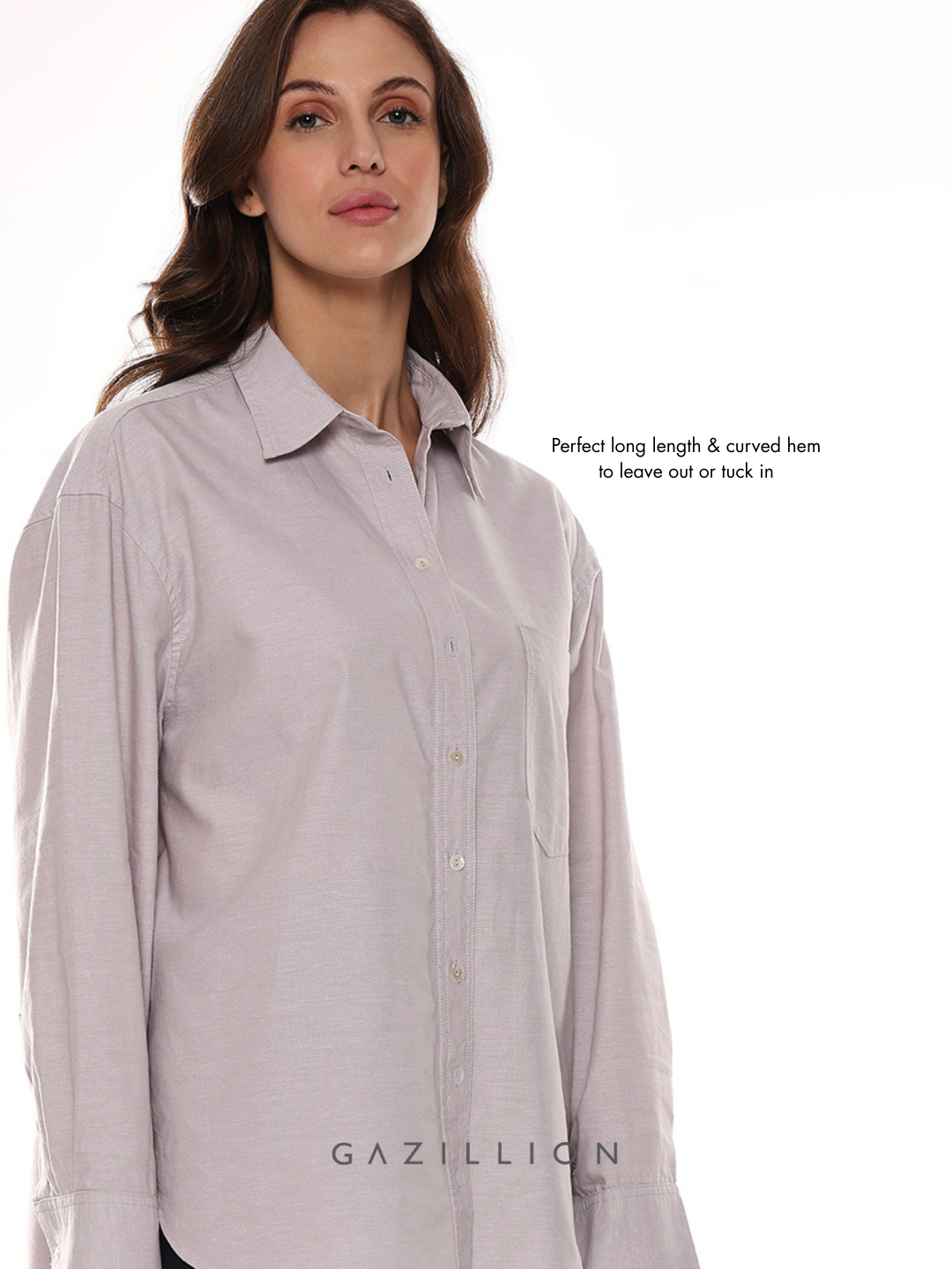 ANDRIA GREY COTTON OVERSIZED SHIRT FOR WOMEN