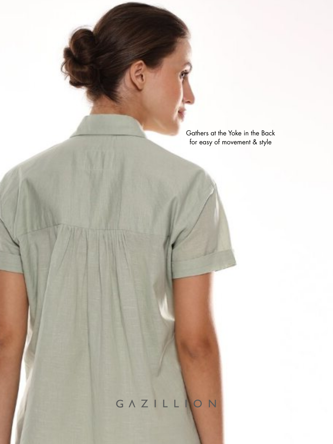 - Gathers at the Yoke in the Back for easy of movement & style