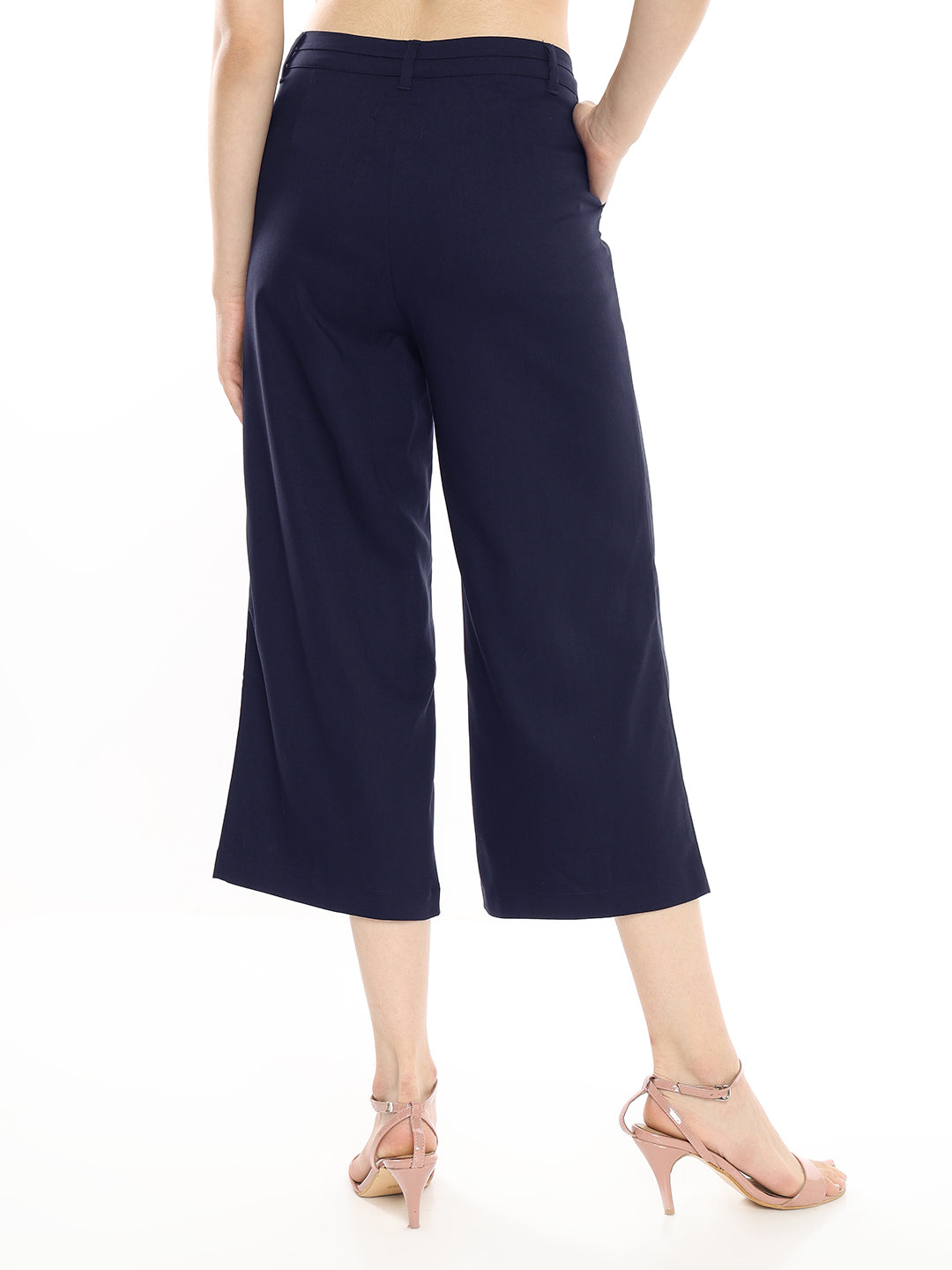 BELLA NAVY BLUE FORMAL 3/4TH STRAIGHT PANTS FOR WOMEN