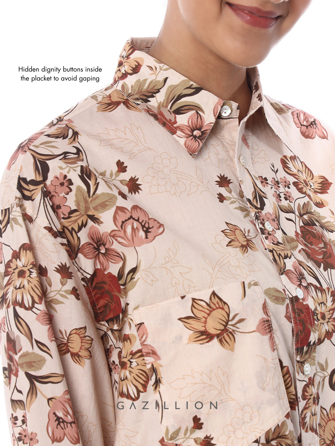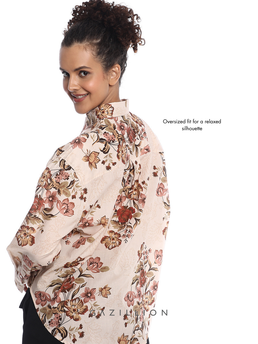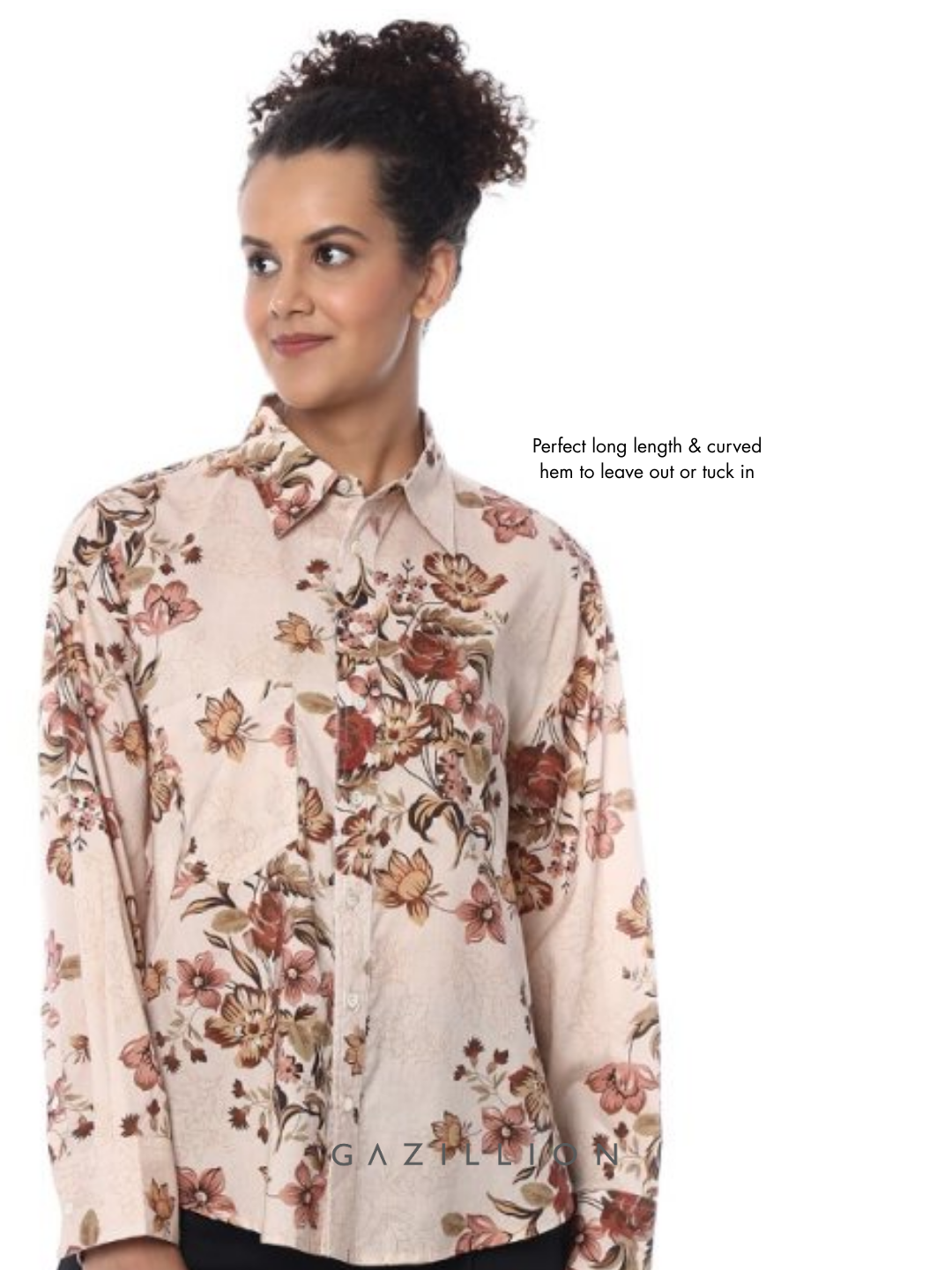 BELLORA BEIGE FLORAL PRINTED OVERSIZED SHIRT FOR WOMEN
