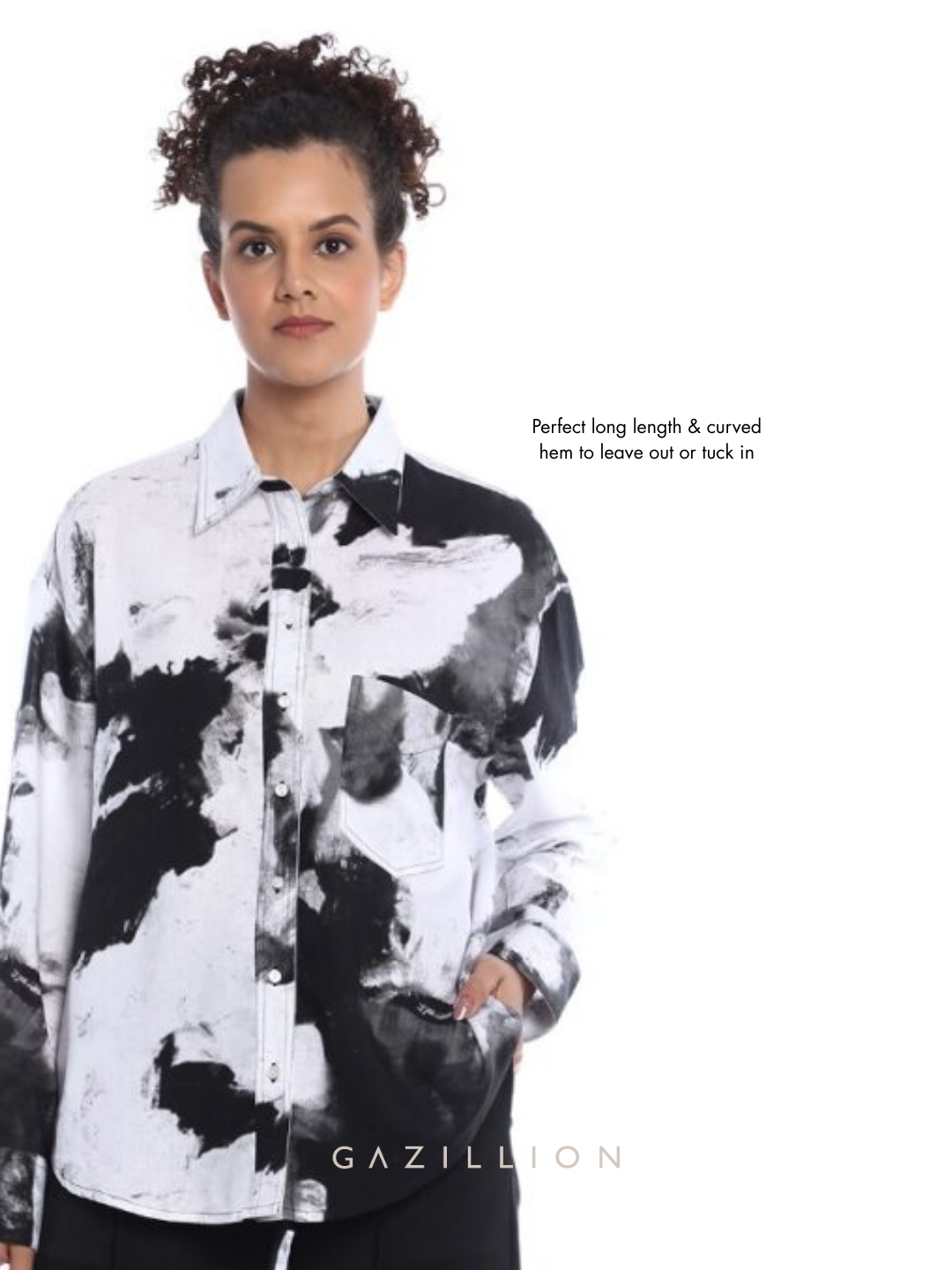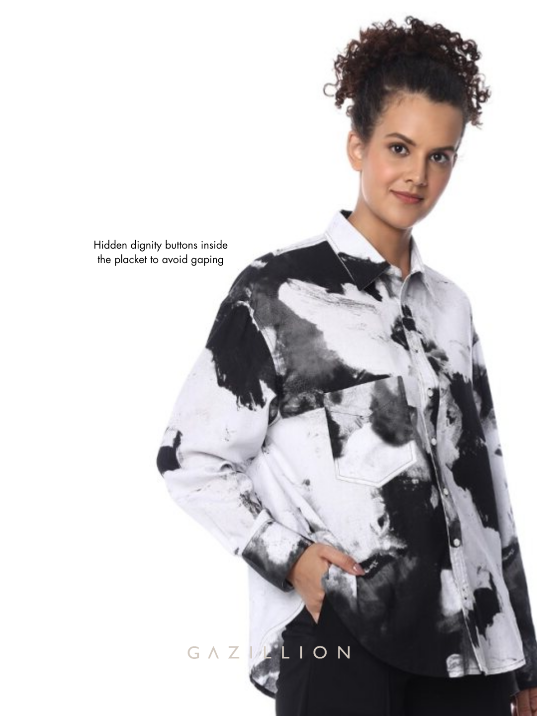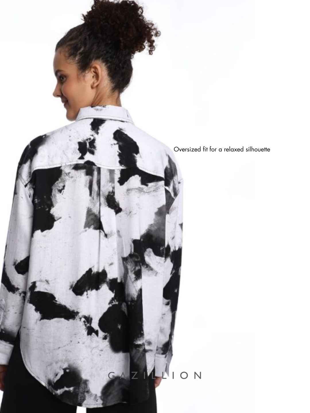 Benna Black & White Floral Print Viscose Linen Oversized Shirt