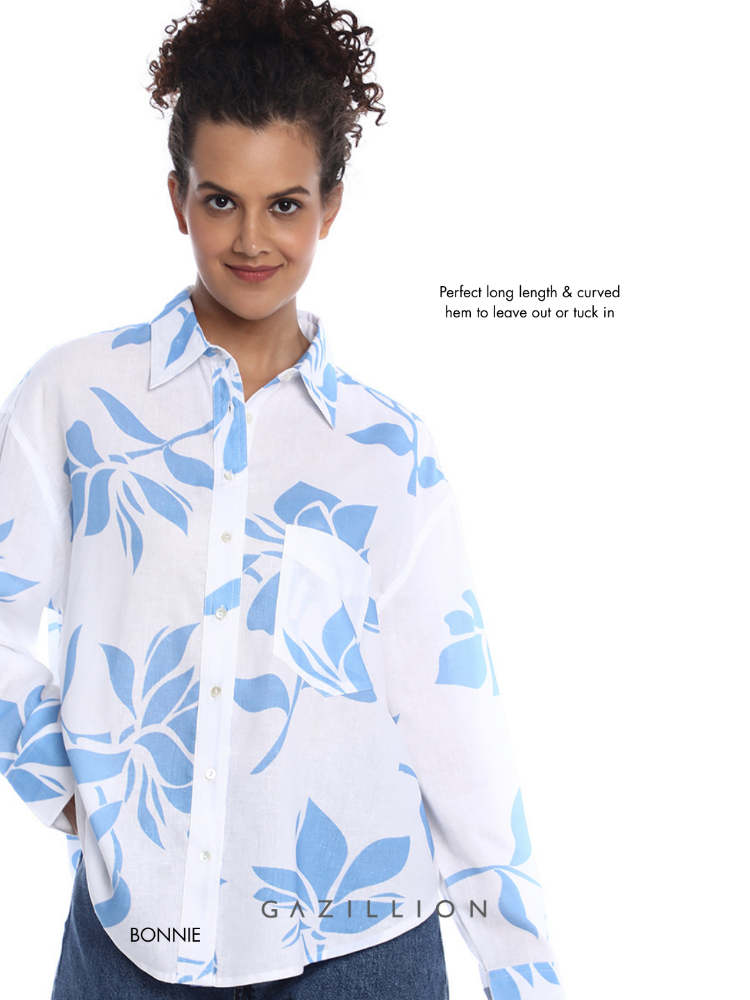 The Bonnie Blue Floral Print Oversized Shirt, made in soft viscose linen, combines an oversized fit in a chic blue floral design, making it the perfect choice for stylish casual wear. It’s a forever piece—classic, versatile, and eternally fashionable.