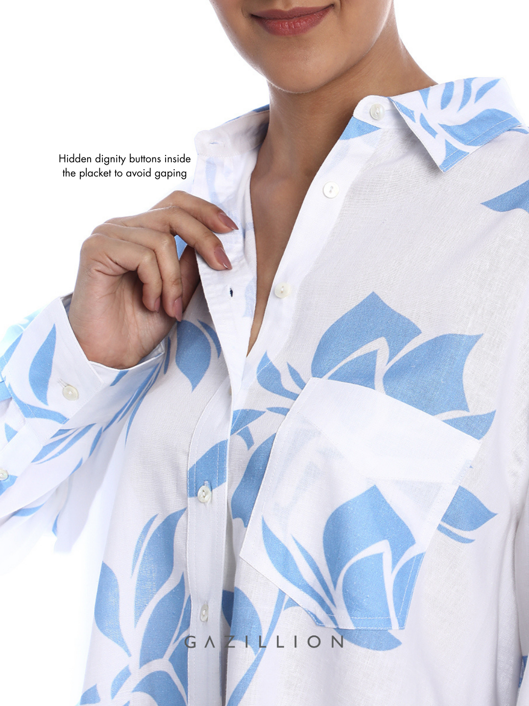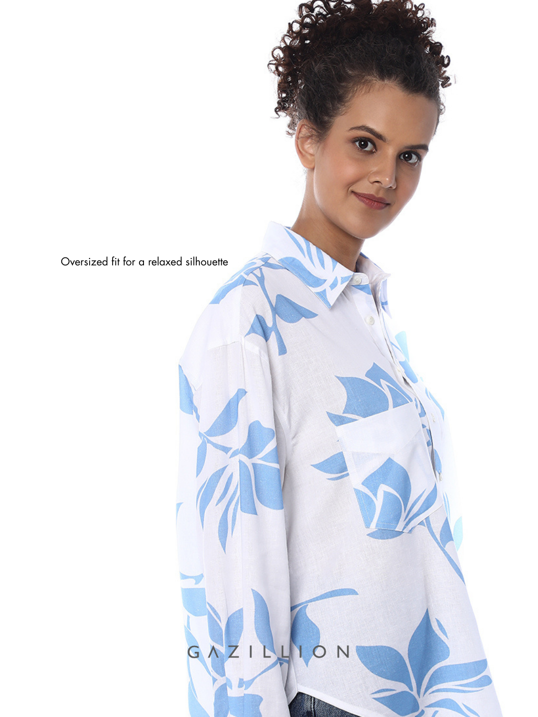 BONNIE BLUE FLORAL PRINTED OVERSIZED SHIRT FOR WOMEN