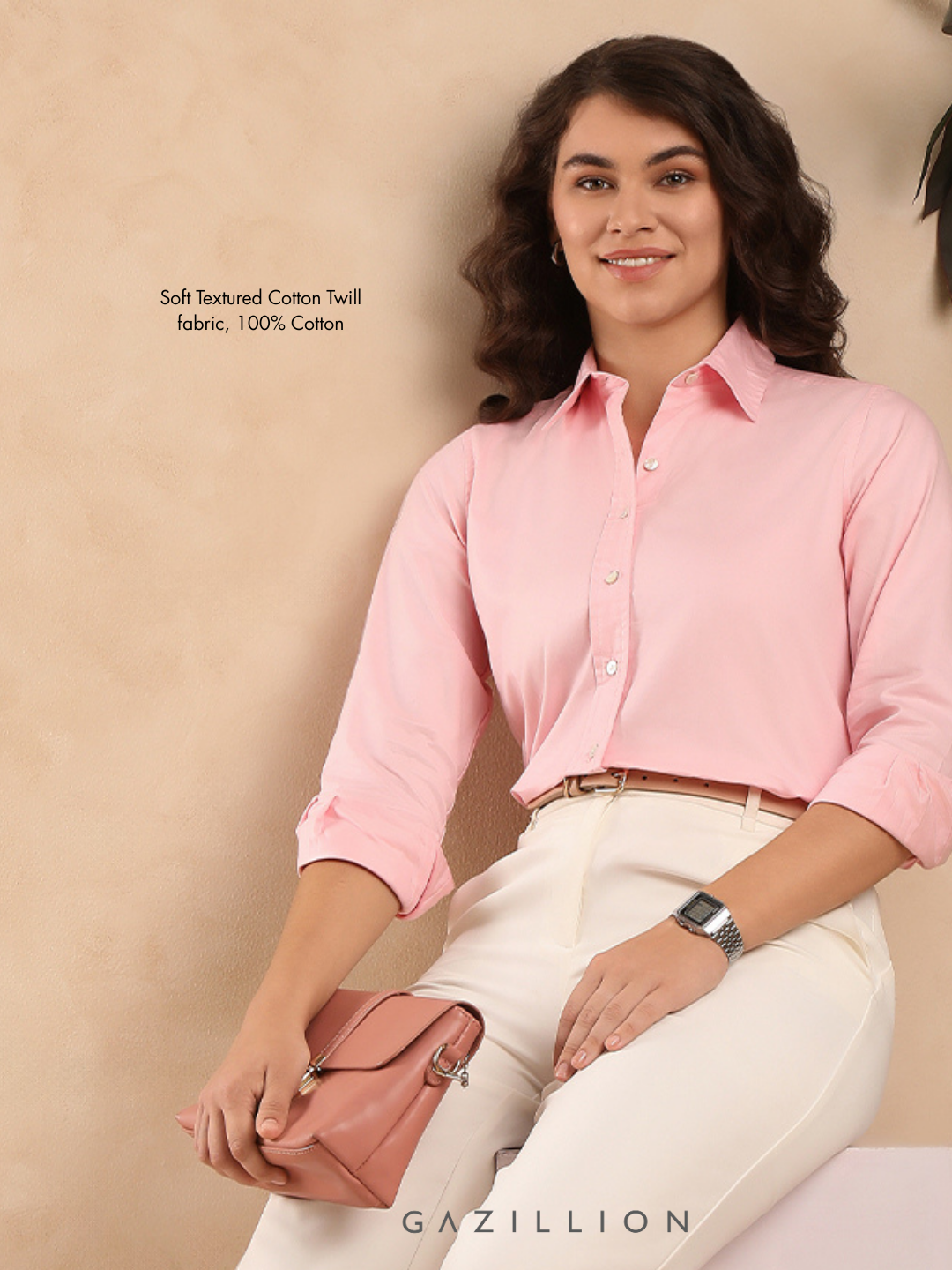 The Deborah Cotton Formal Shirt is a refined classic. Made from breathable cotton, its relaxed fit and full sleeves ensure all-day comfort. Perfect for office and workwear, this stylish light pink shirt adds a soft, feminine touch to your wardrobe.