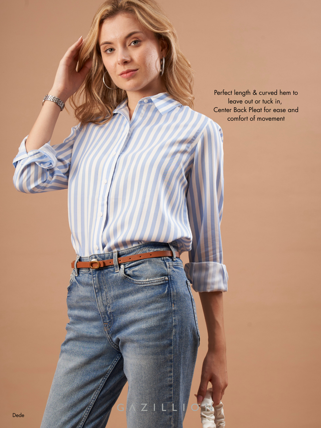 The Dede a Blue & White Striped Cotton Shirt redefines casual chic with its timeless blue and white stripes. Made from soft cotton, this relaxed fit shirt adds a classy touch to everyday wear, perfect for effortless styling.