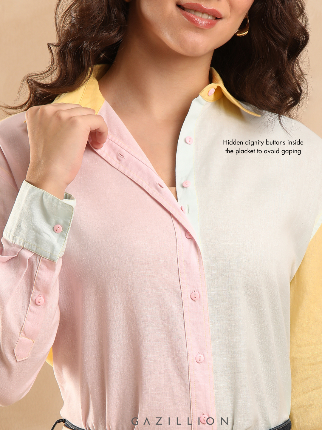 Deera Pastel Colour Blocked Cotton Oversized Shirt