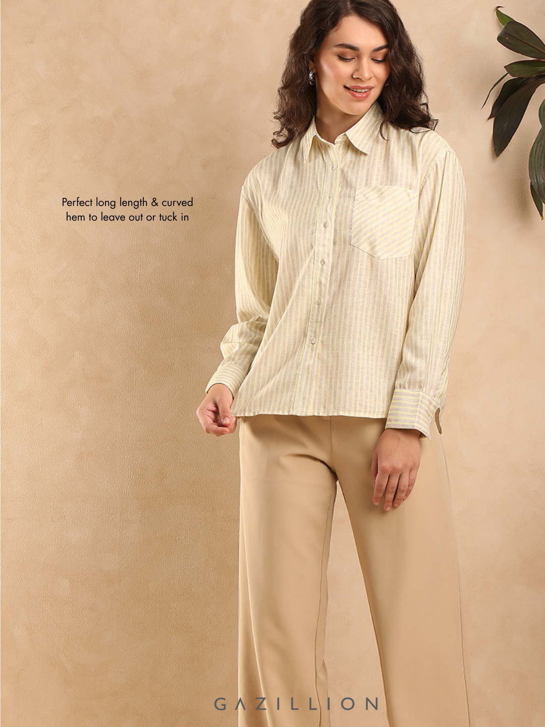 DELISA NEON GREEN STRIPED OVERSIZED SHIRT FOR WOMEN