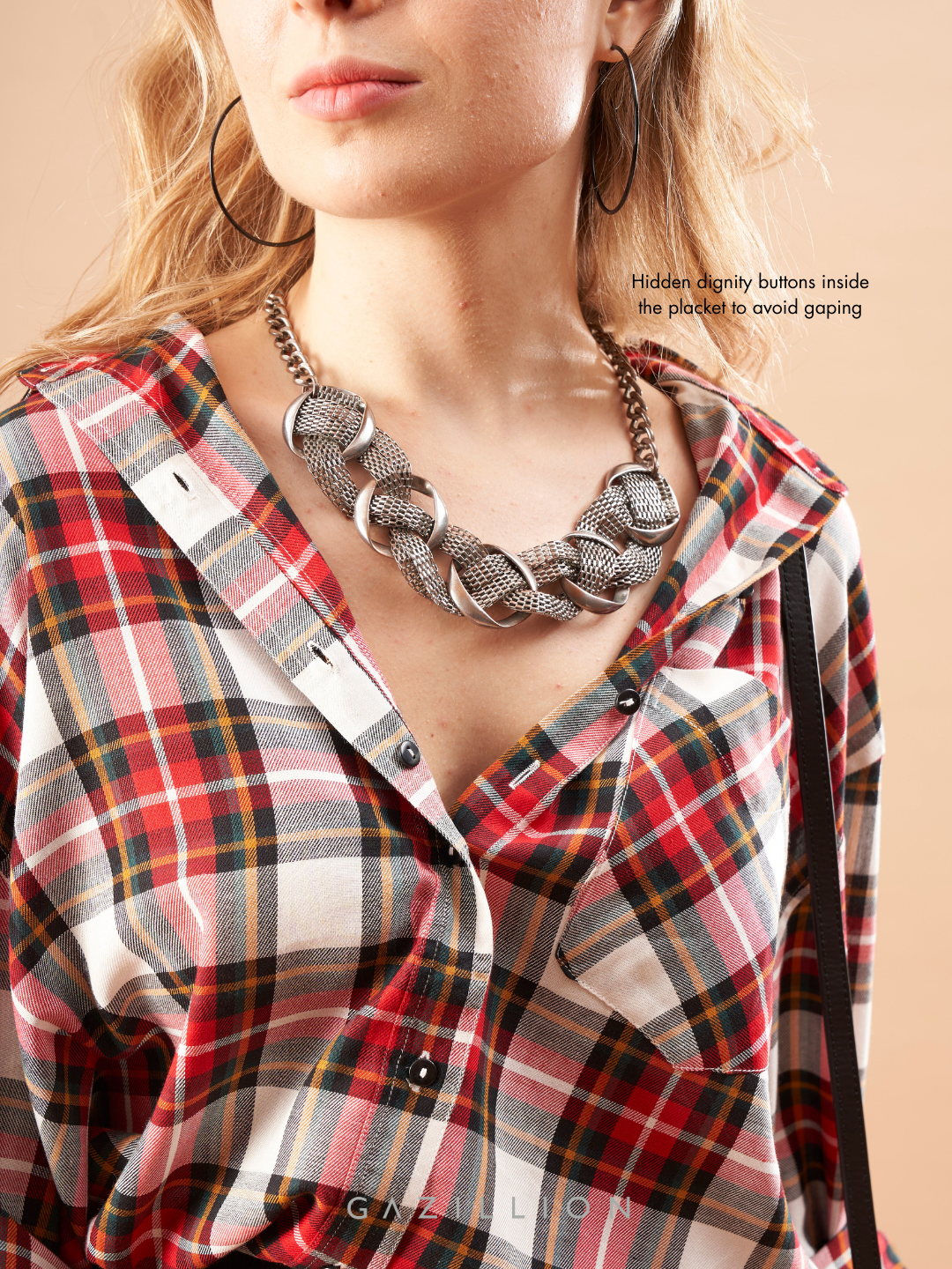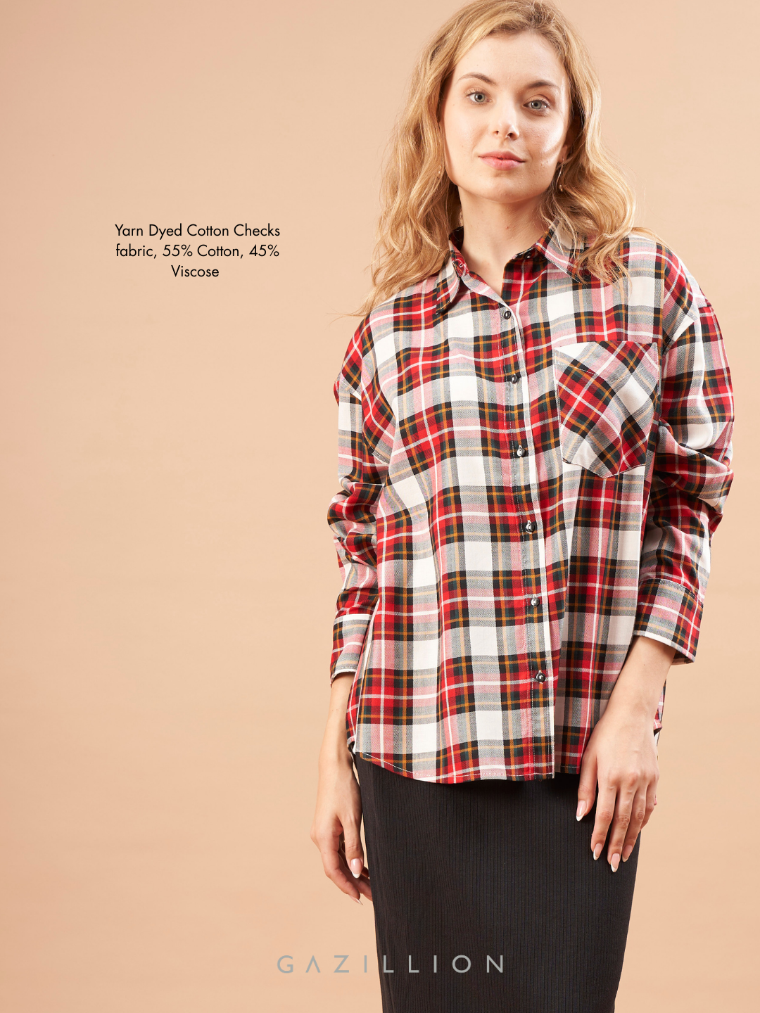 DIA RED CHECKS COTTON OVERSIZED SHIRT FOR WOMEN