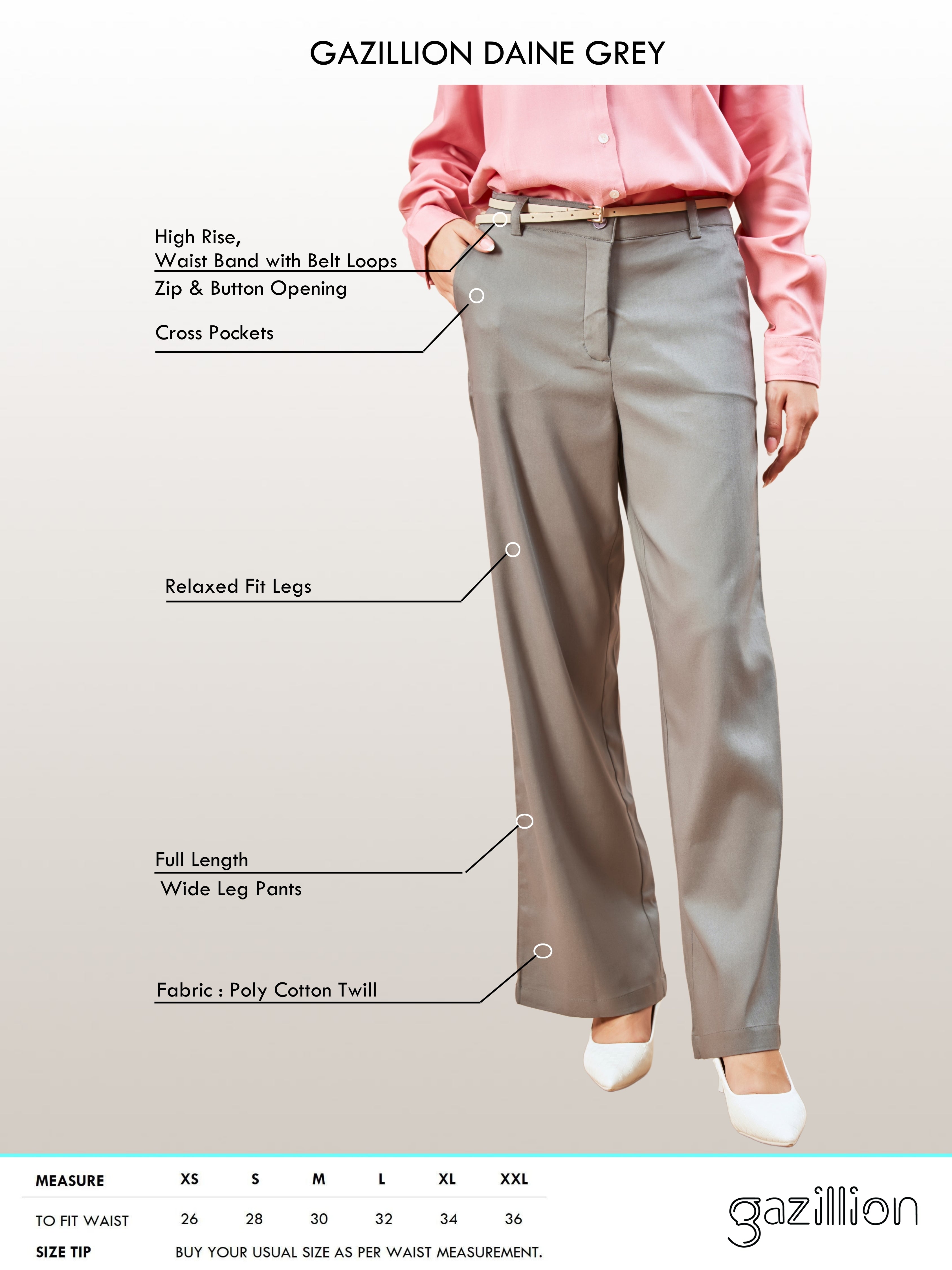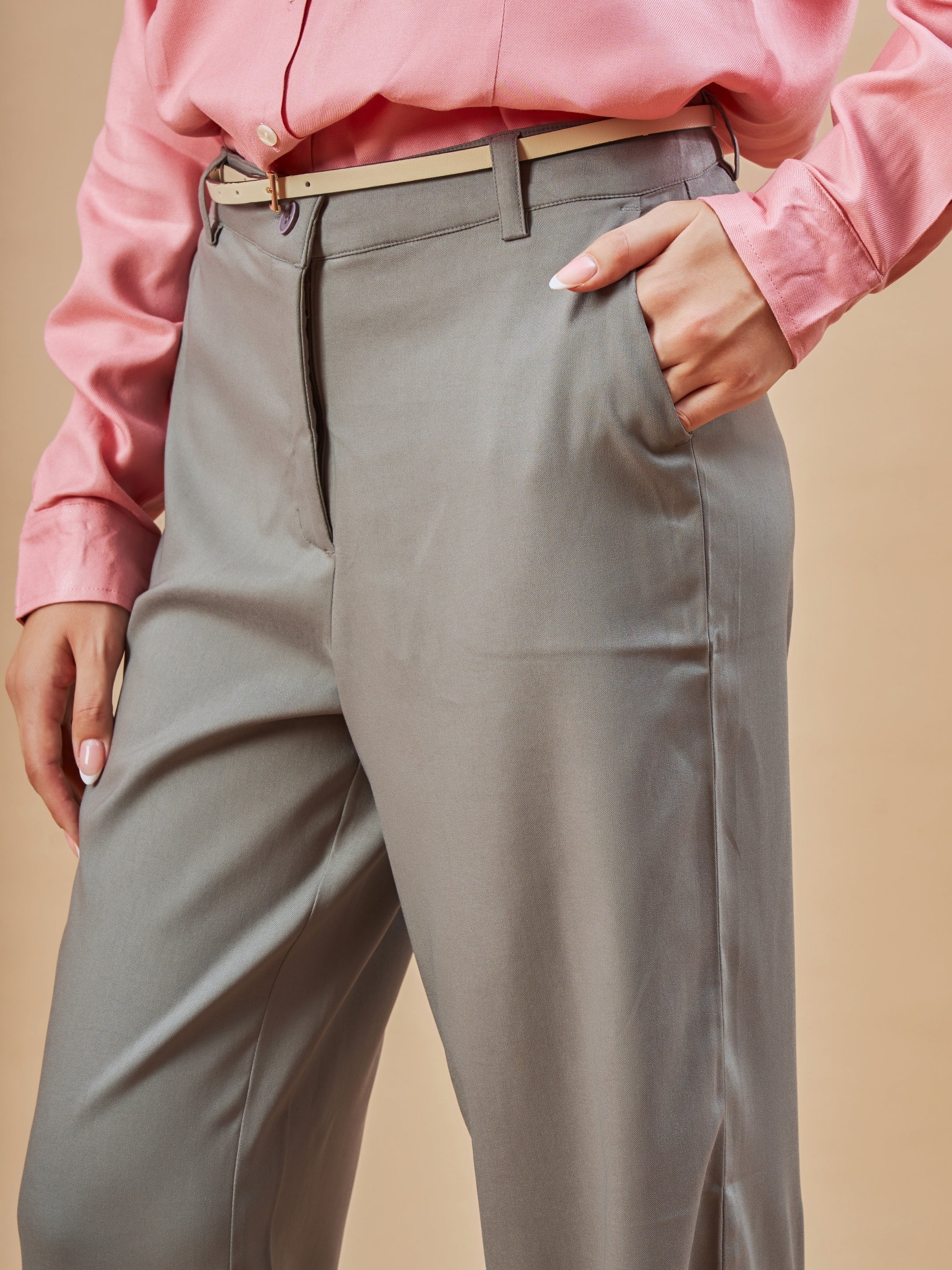 The Diane Grey Formal Trousers, high-waisted and straight-fit, are a timeless addition to your office wardrobe. Designed for comfort and elegance, they move effortlessly with you, making sure you look poised and confident with every step.