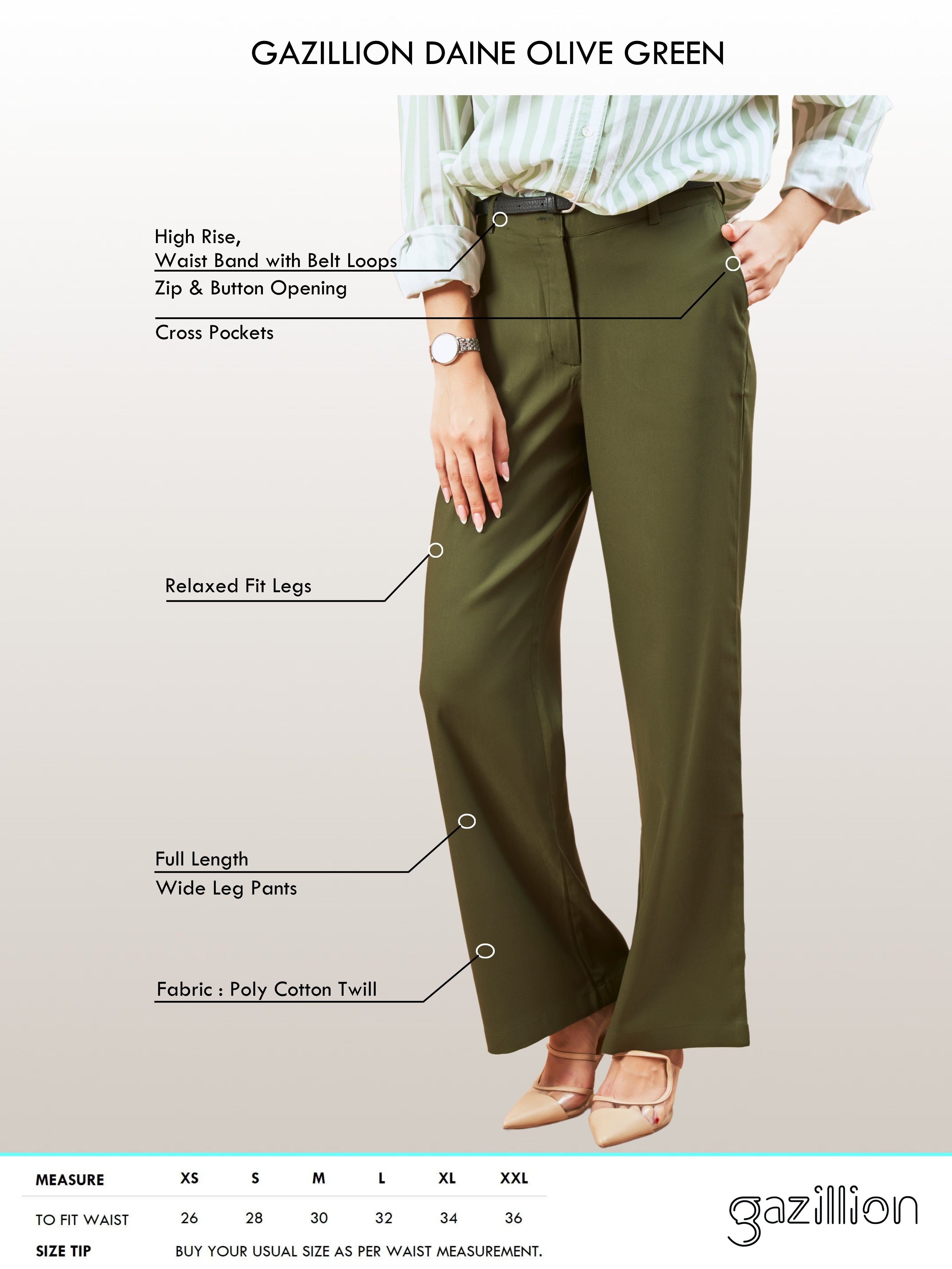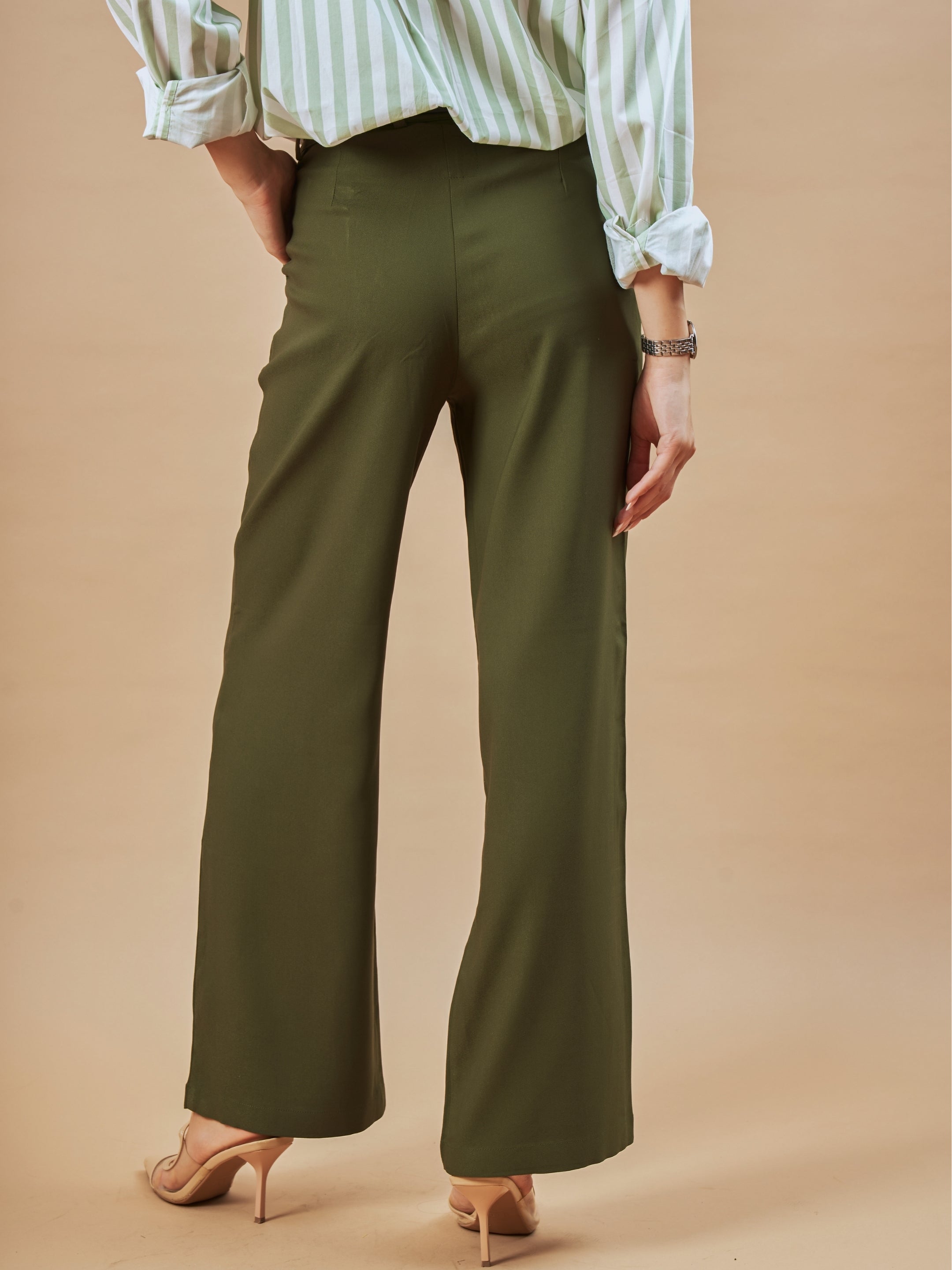 DIANE OLIVE GREEN FORMAL TROUSERS FOR WOMEN