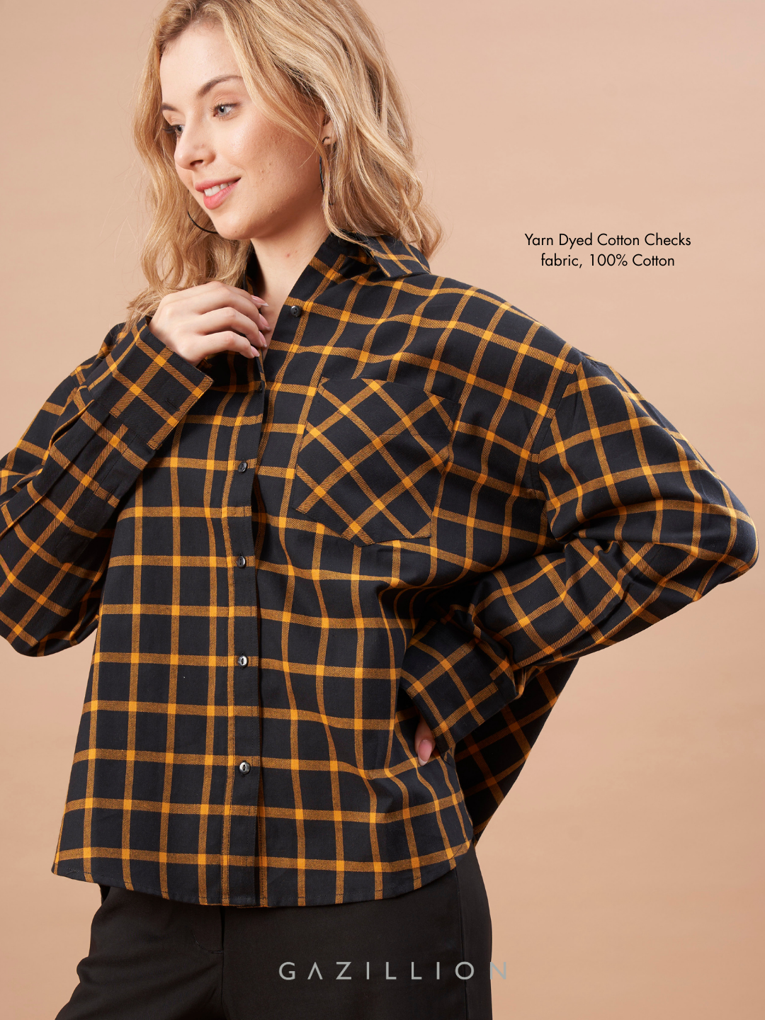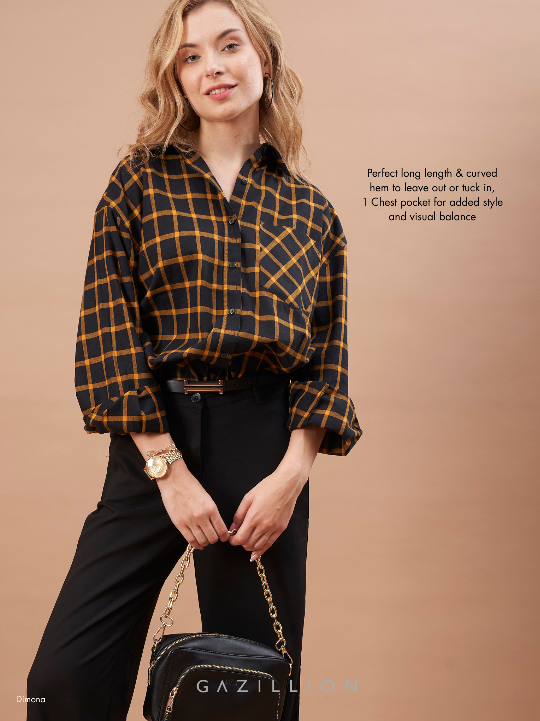 The Dimona Black Checks Cotton Oversized Shirt is a timeless blend of comfort and style. Made from soft cotton with a classic black & orange check pattern, wearing it transforms your stride, radiating confidence and inviting admiration.