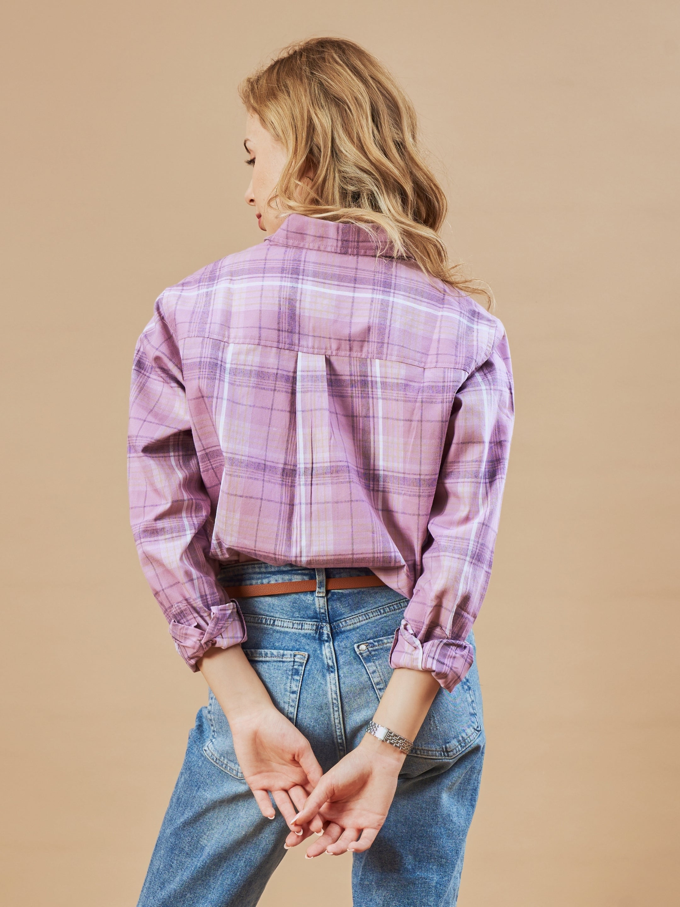 DORALYNN LAVENDER CHECKS COTTON OFFICE CASUAL SHIRT FOR WOMEN