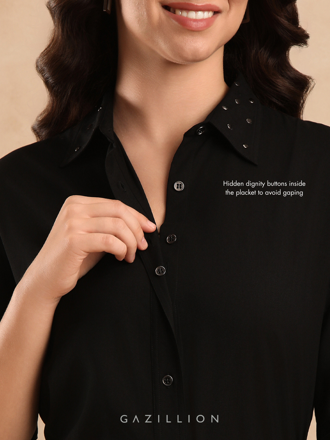 DOROTHY BLACK OVERSIZED METALLIC STUDS VISCOSE SHIRT FOR WOMEN