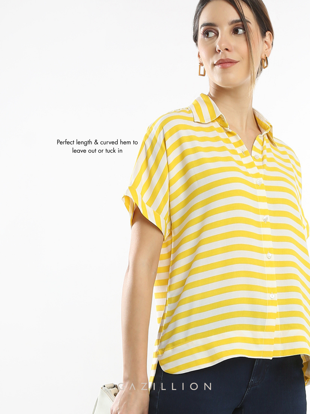 When your day demands style with ease—whether it’s a casual outing, an impromptu event or an activity-packed day —the Eartha Yellow Stripes Office Shirt has you covered. Designed with the perfect balance of comfort and charm, it’s a shirt for a woman who wants to spend her day feeling joyous and cheerful.