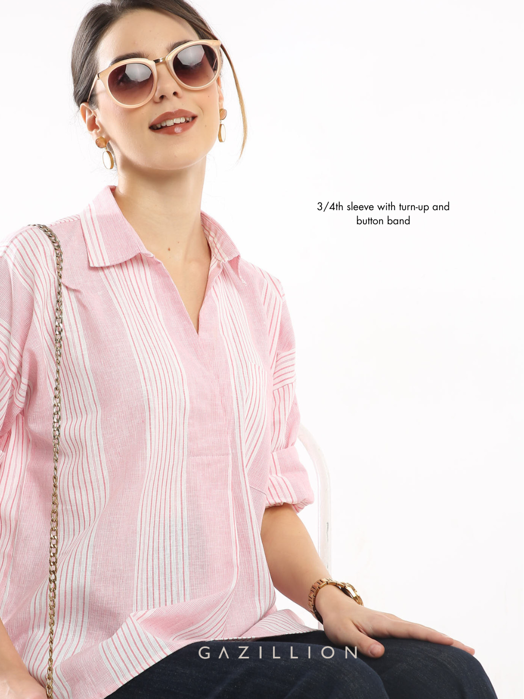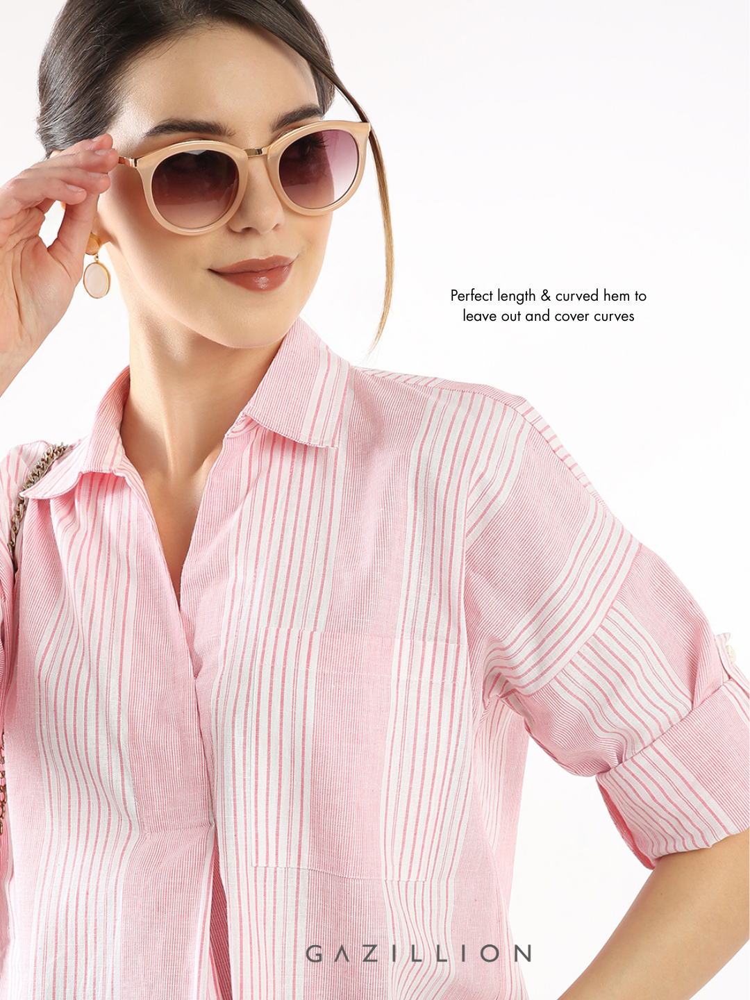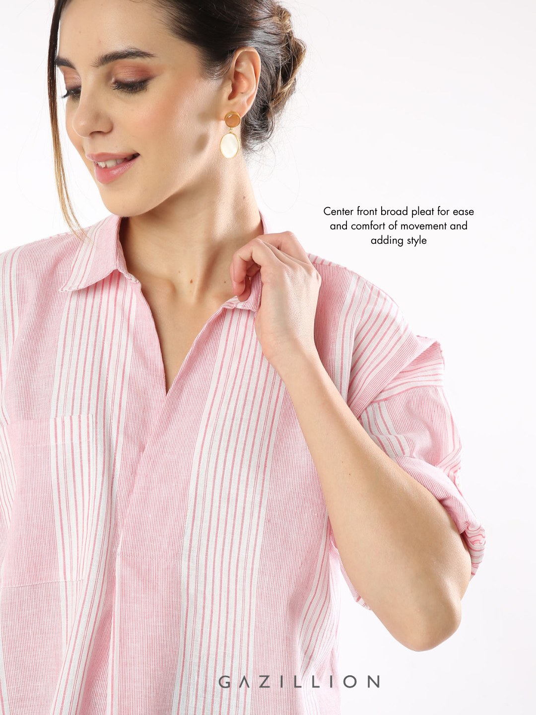 ELNA PINK STRIPES COTTON STYLISH PULLOVER SHIRT FOR WOMEN