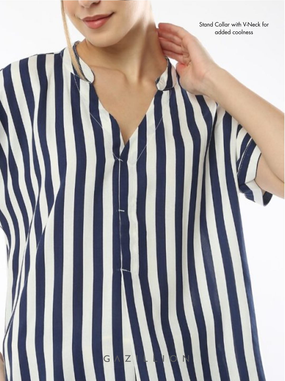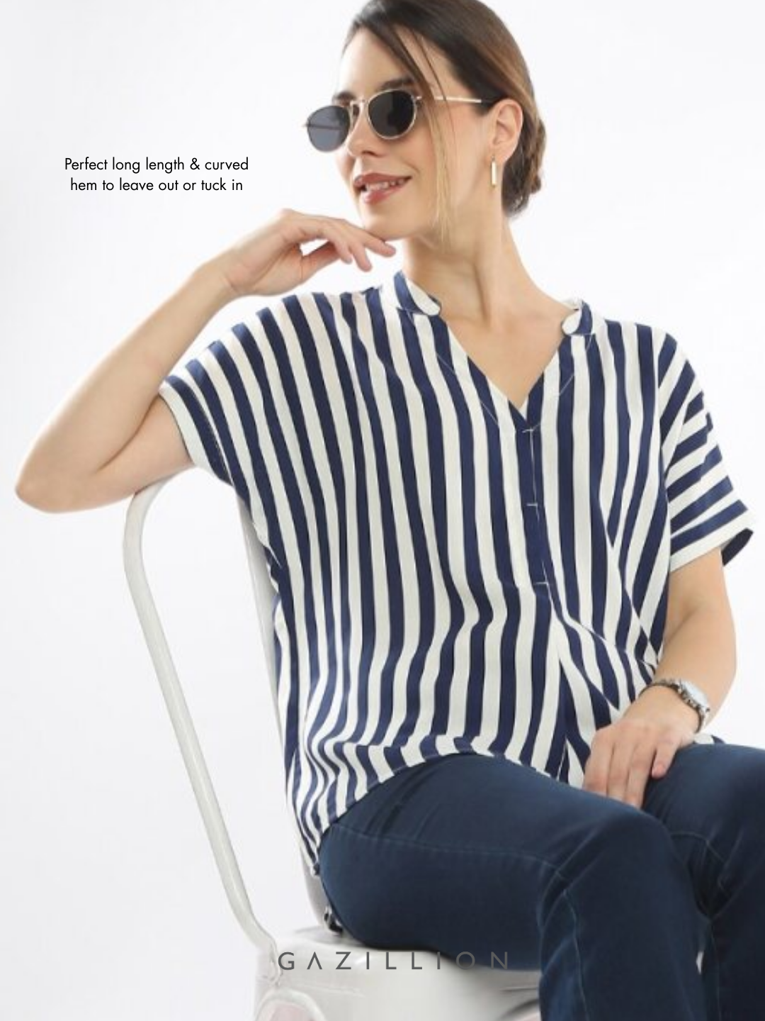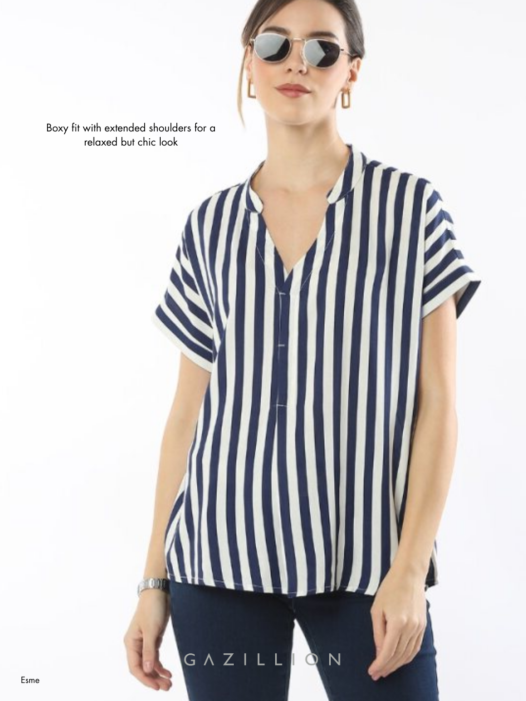 The Esme Striped Formal Top is the perfect blend of style and sophistication, making it an ideal choice for workwear. Designed to flatter all sizes, it offers both elegance and all-day confidence. The boxy fit with extended shoulders ensures a relaxed yet chic silhouette. Crafted from 100% yarn-dyed, soft twill viscose fabric, it offers a luxurious feel and effortless drape.