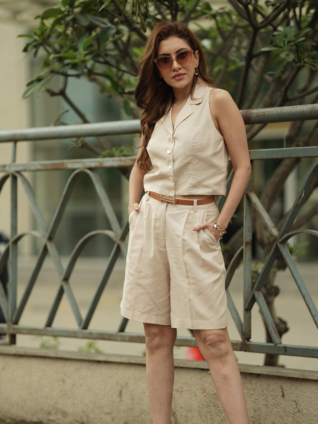 Daylin Beige Vest Stylish Cotton Linen Co-Ord Set