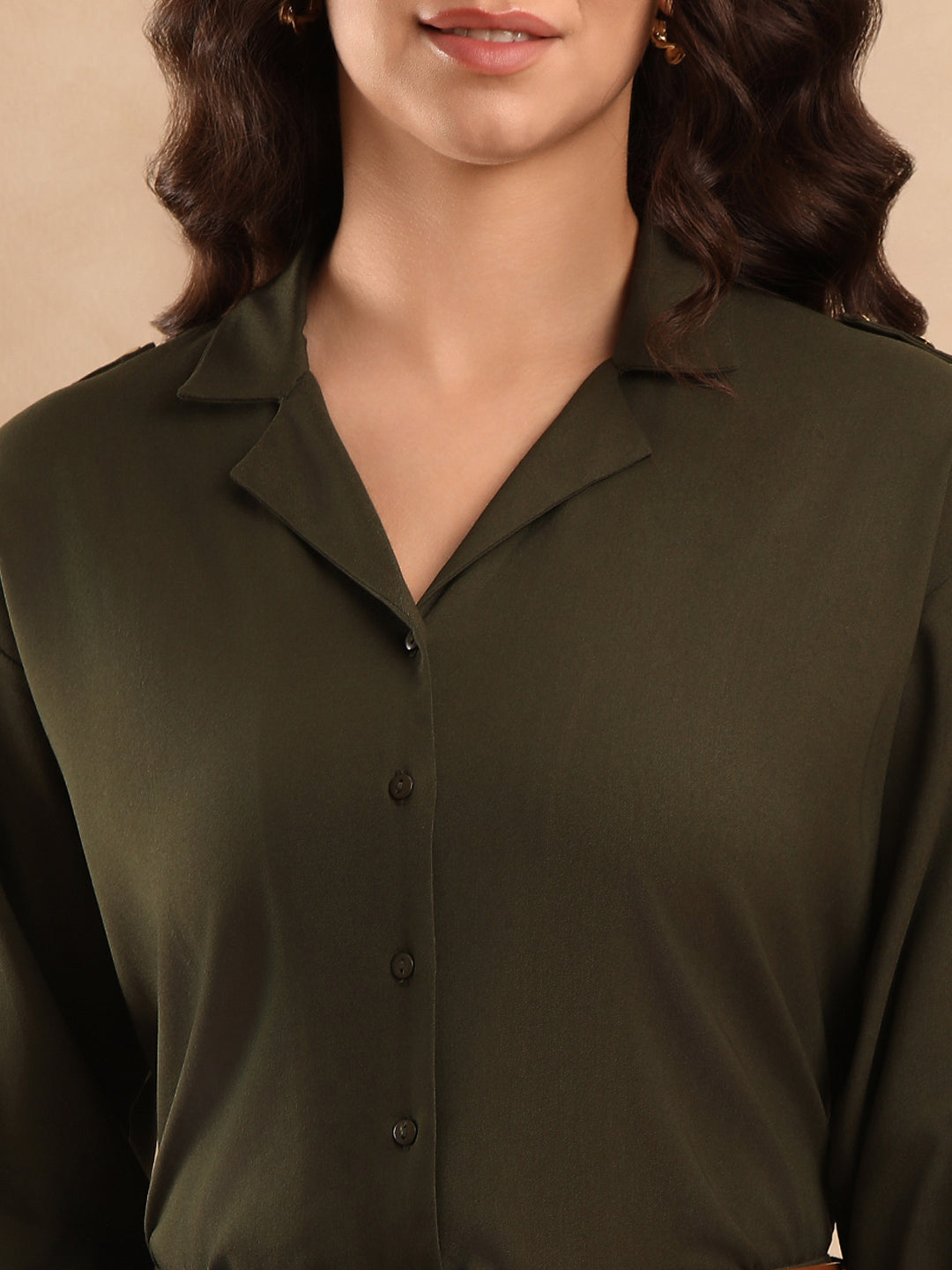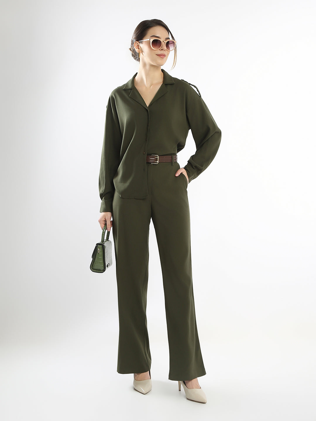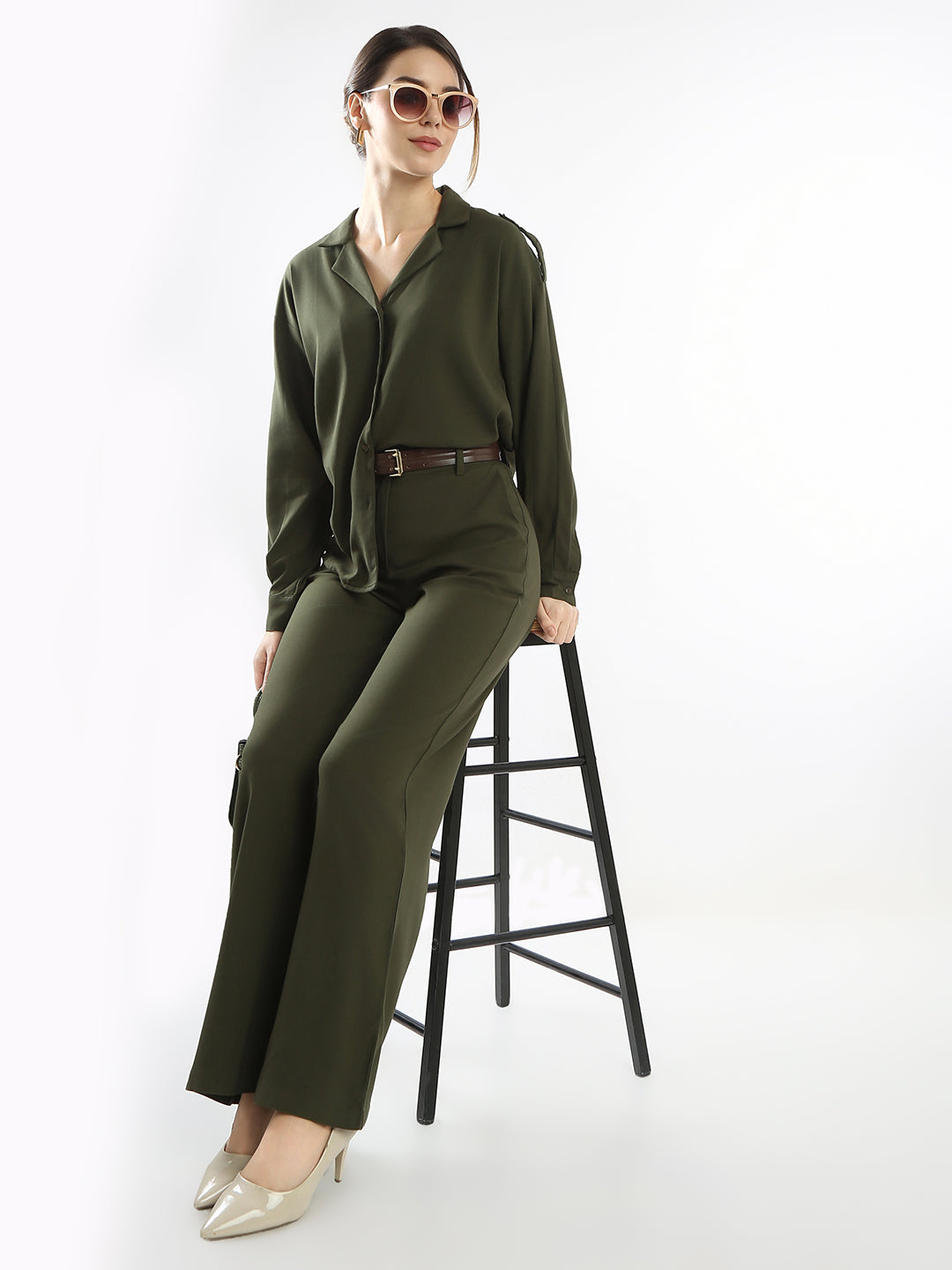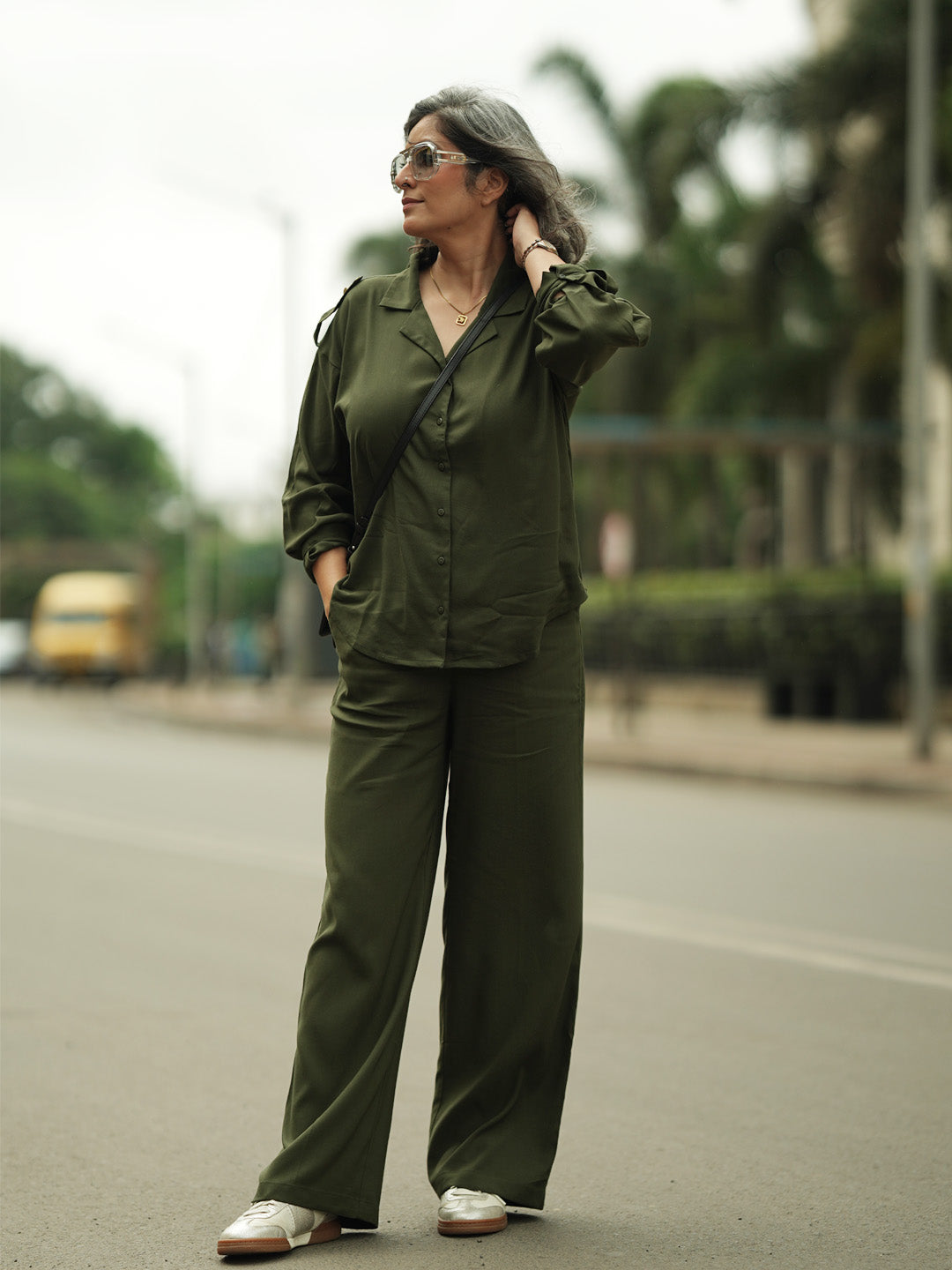 Durance Olive Green Viscose Stylish Office Co-Ord Set