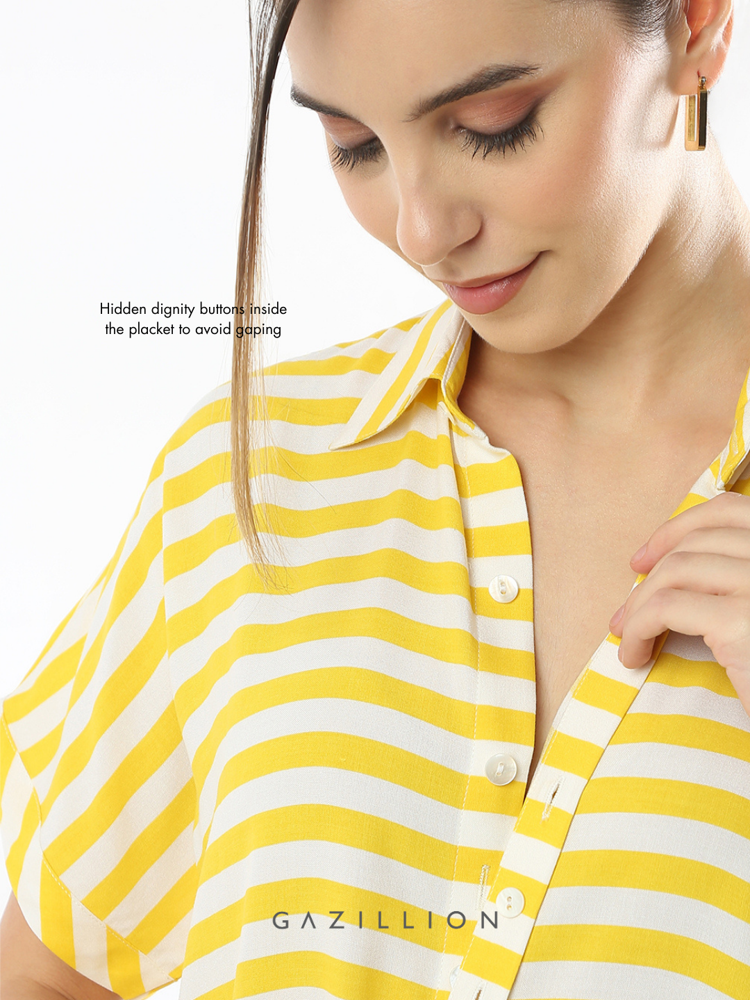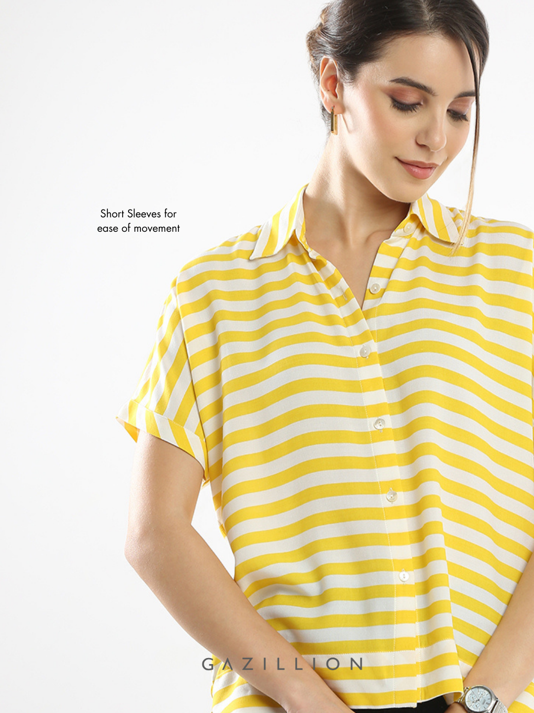When your day demands style with ease—whether it’s a casual outing, an impromptu event or an activity-packed day —the Eartha Yellow Stripes Office Shirt has you covered. Designed with the perfect balance of comfort and charm, it’s a shirt for a woman who wants to spend her day feeling joyous and cheerful.