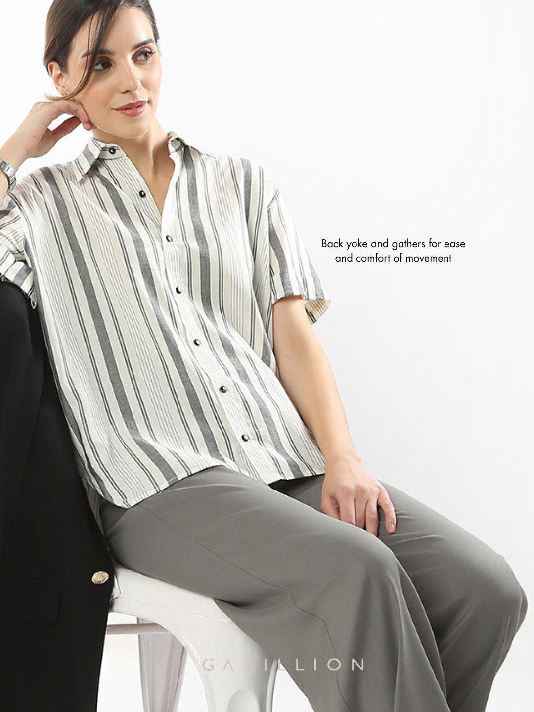 Edith Grey Stripes Cotton Short Sleeves Shirt