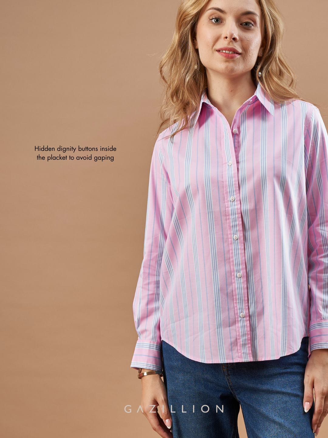 ELISHA PINK STRIPES COTTON FORMAL SHIRT FOR WOMEN