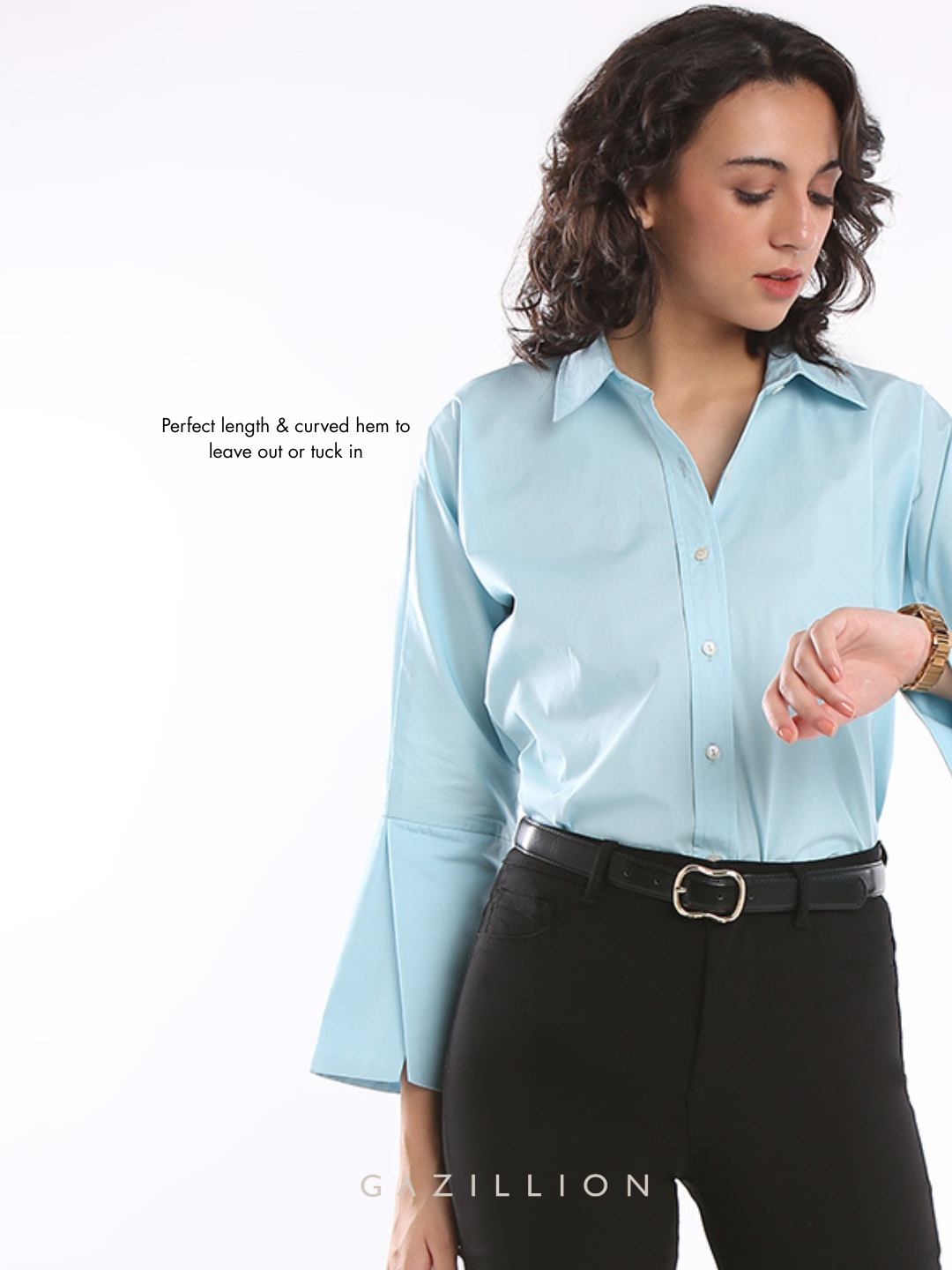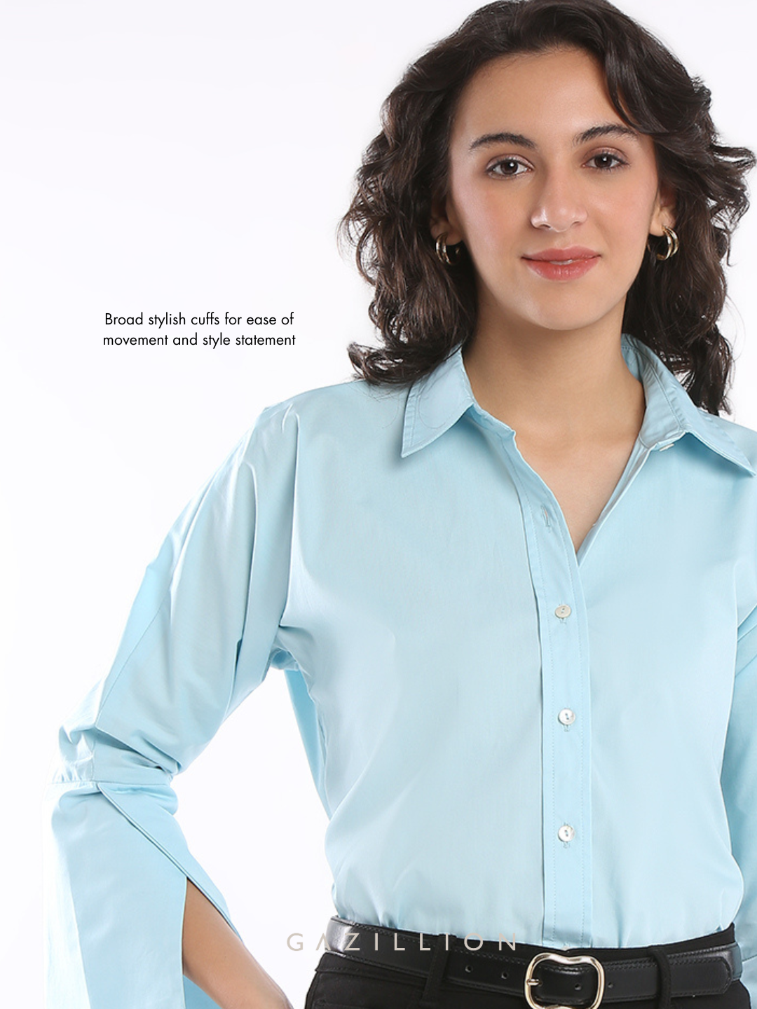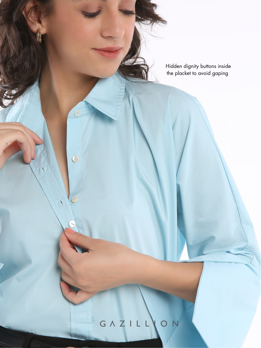 EMERY SKY BLUE COTTON FORMAL SHIRT FOR WOMEN