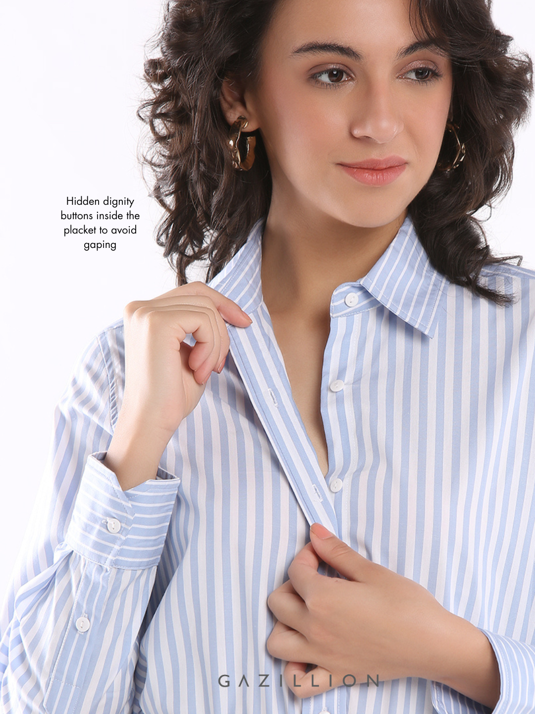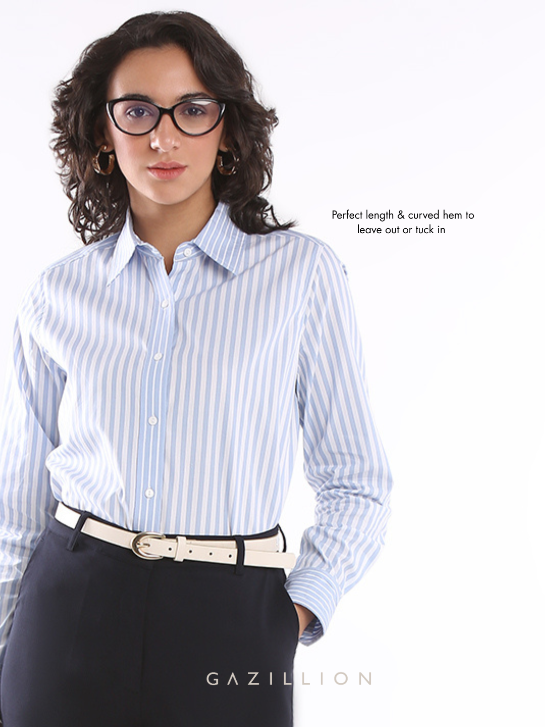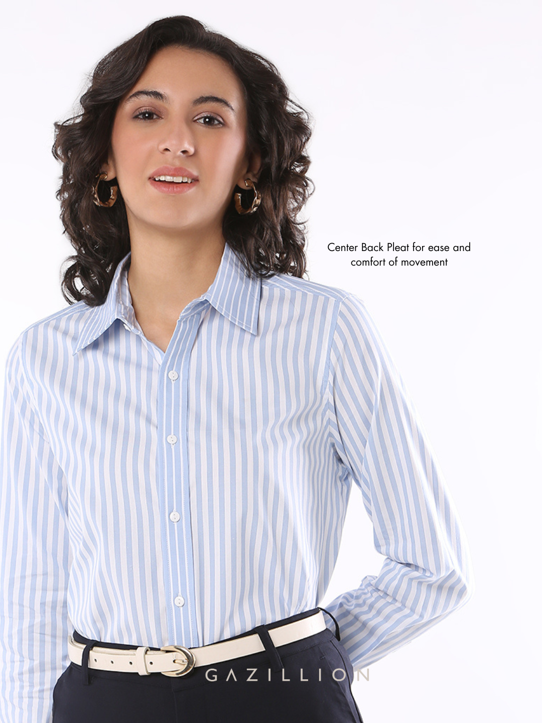EMMA MIXED BLUE & WHITE STRIPES COTTON FORMAL SHIRT FOR WOMEN