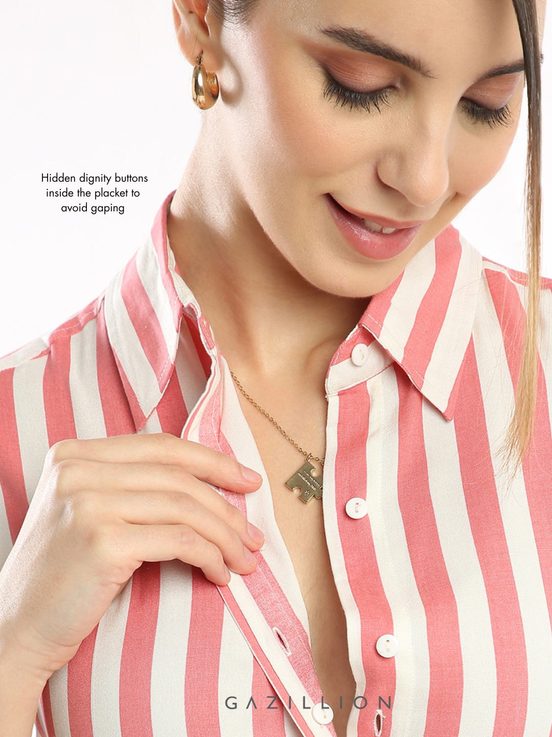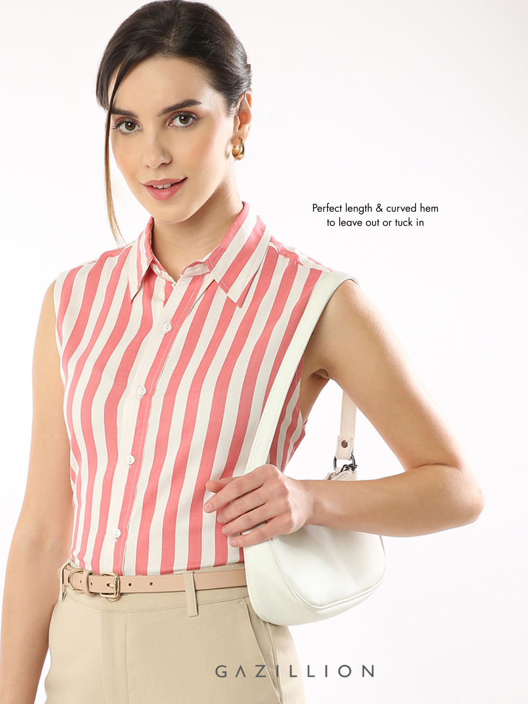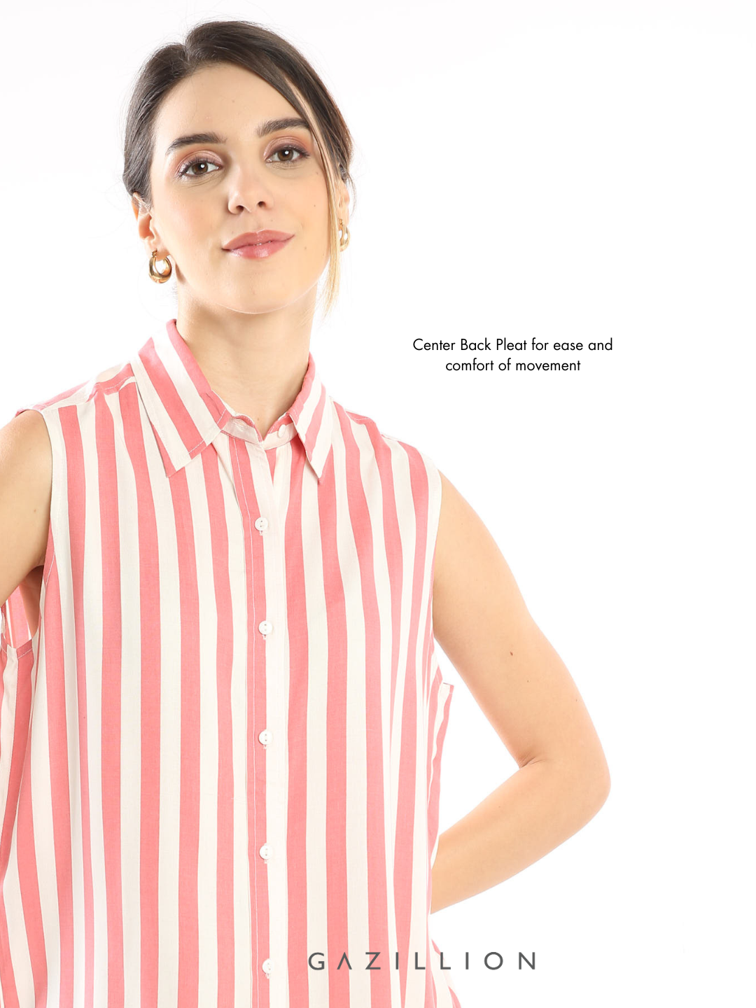EMMY PINK STRIPES SOFT FORMAL SLEEVELESS SHIRT FOR WOMEN