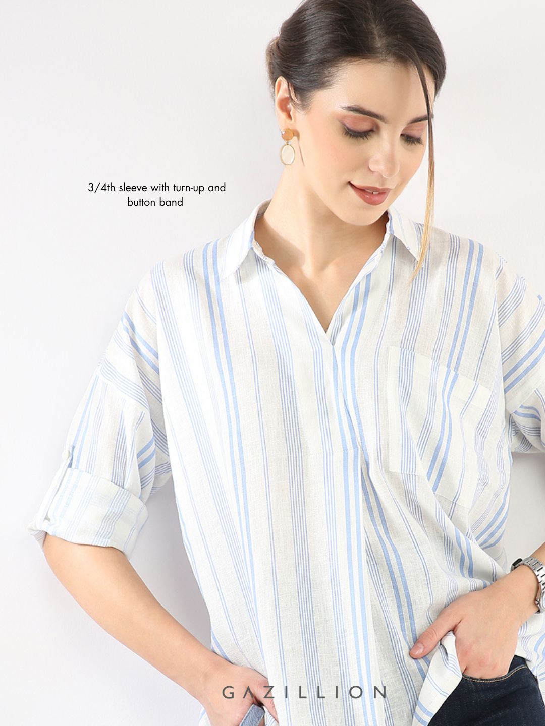 Erin Blue & White Stripes Cotton Pullover Shirt