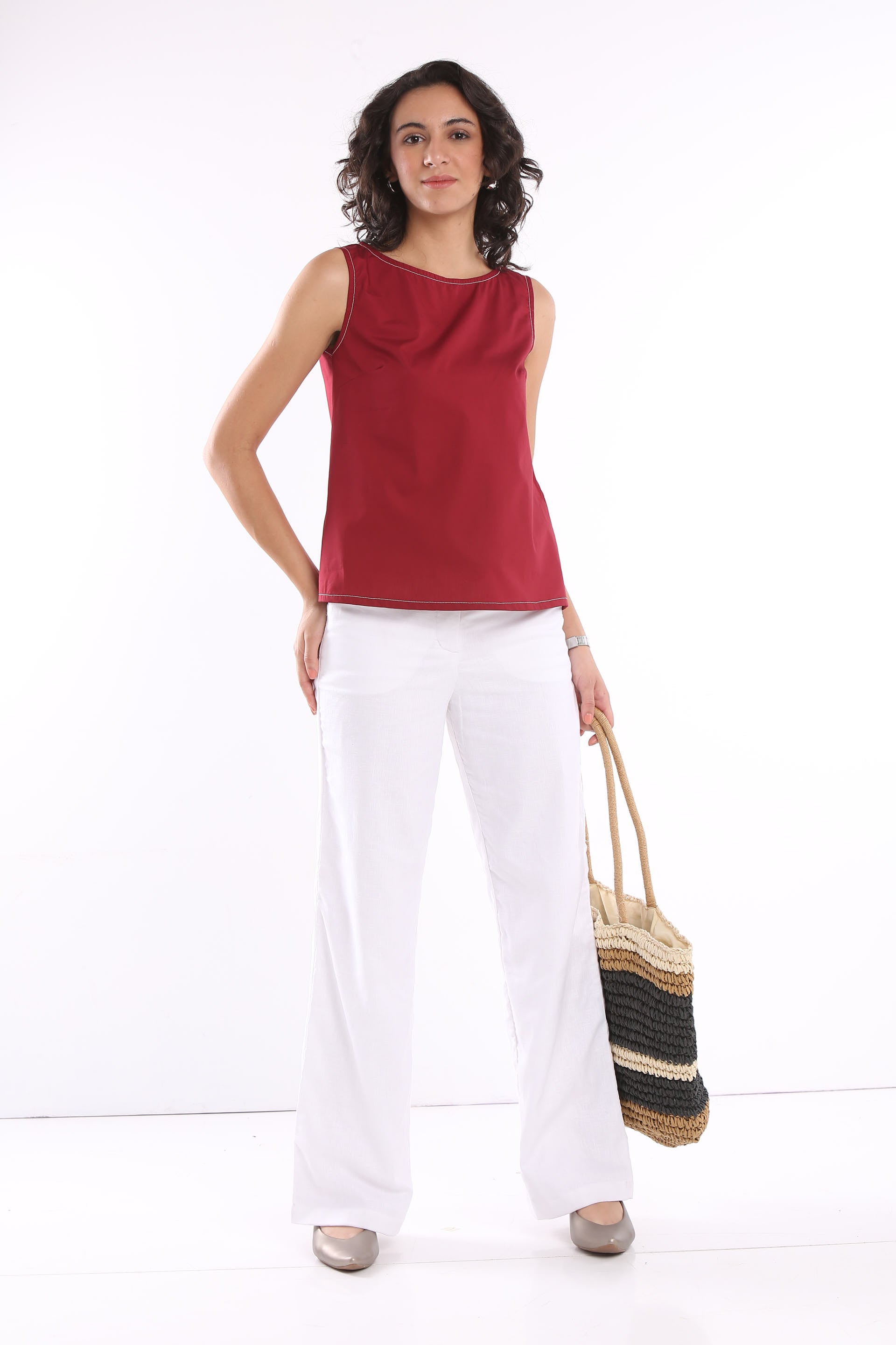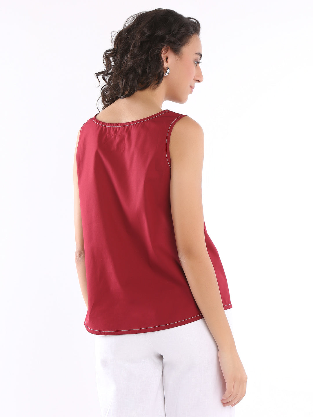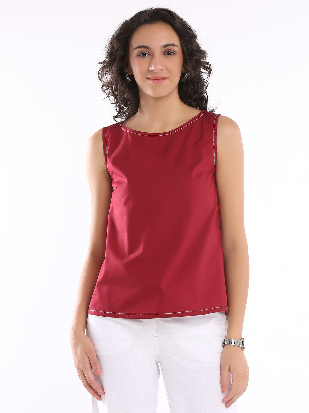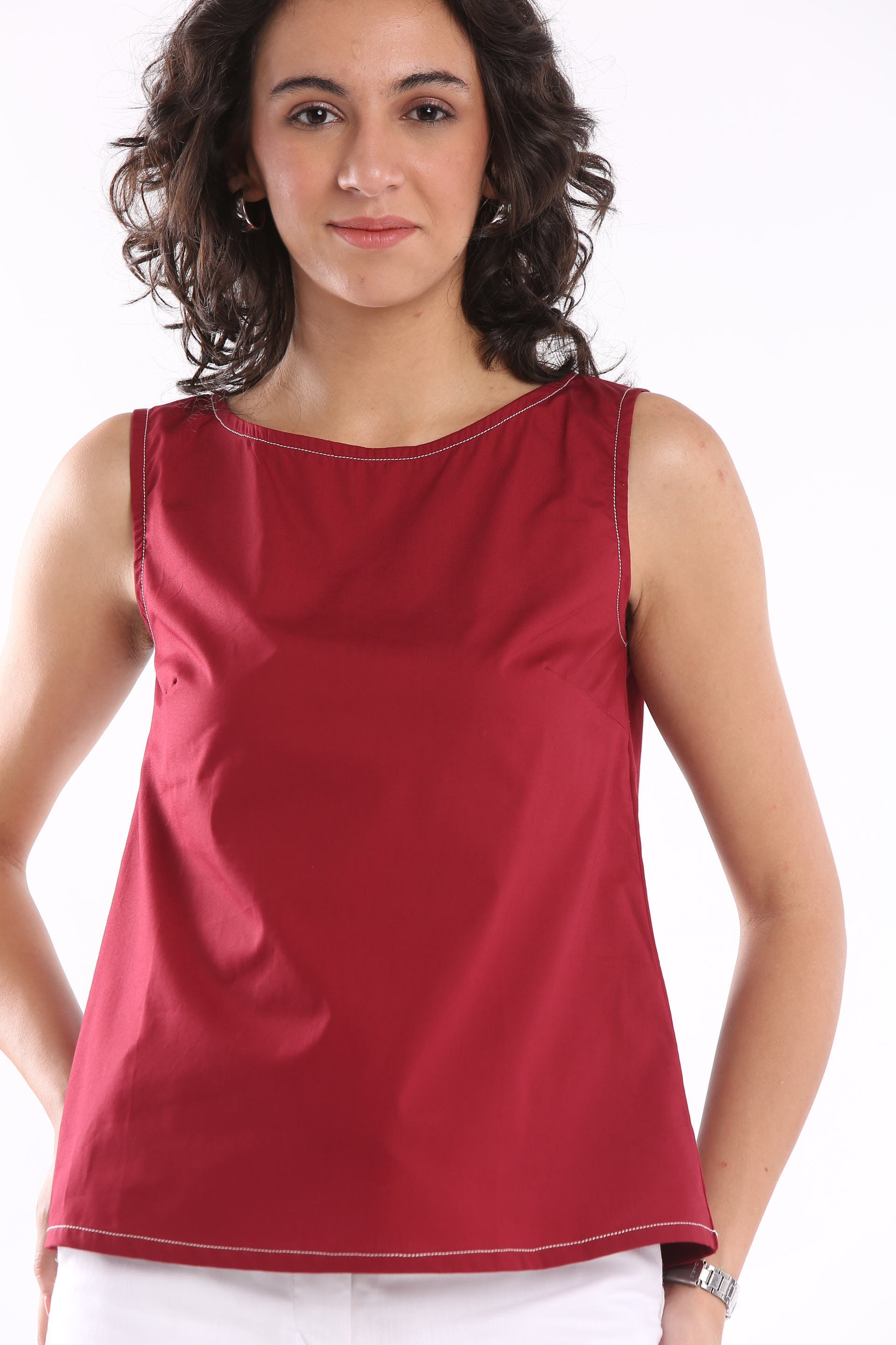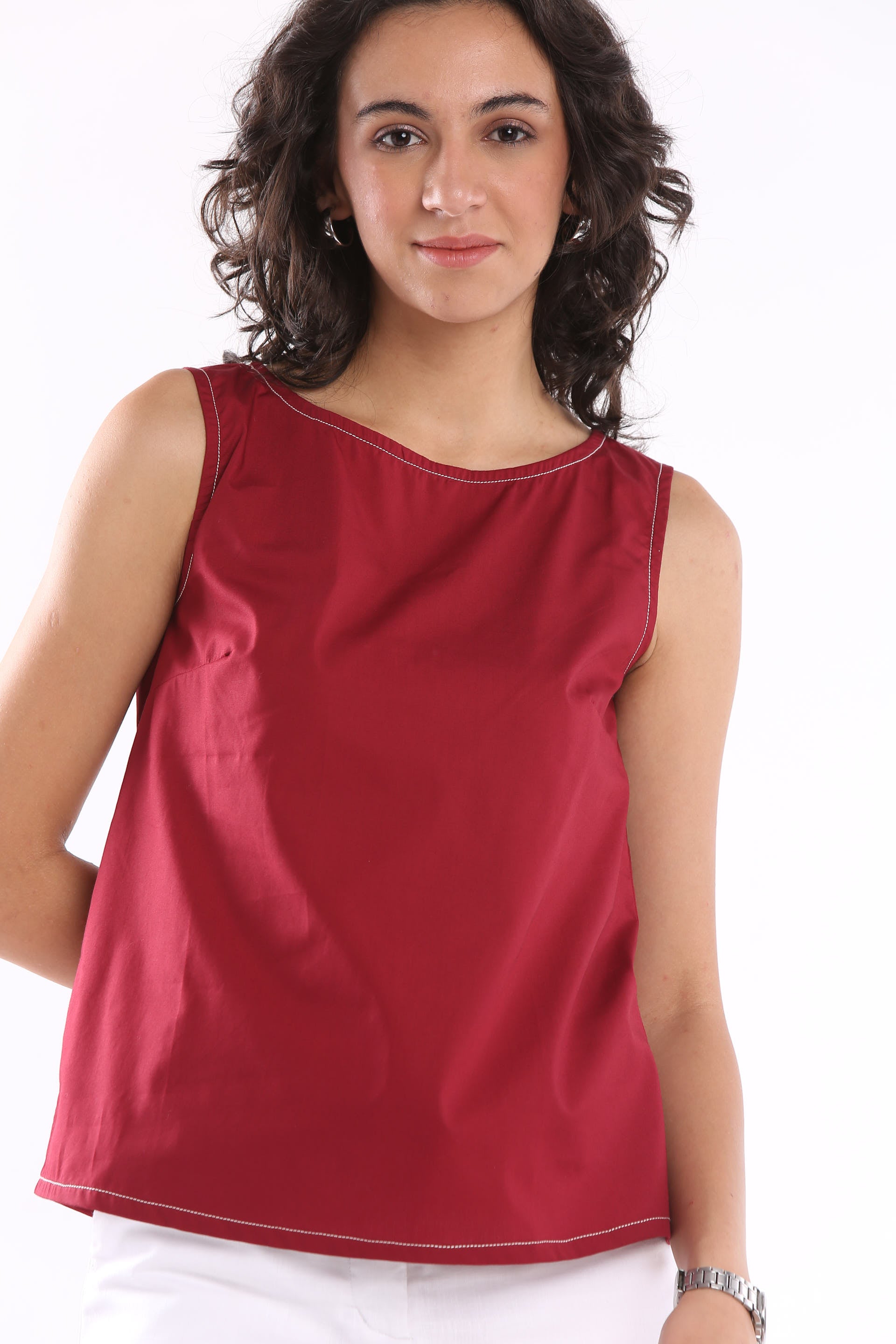 ETTA RED COTTON CLASSY FORMAL SLEEVELESS TOP FOR WOMEN