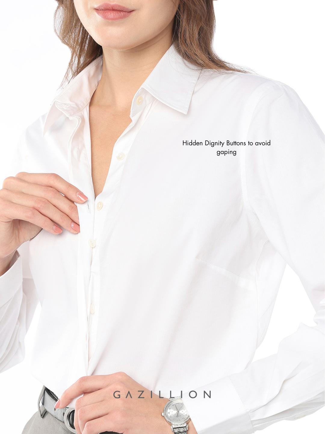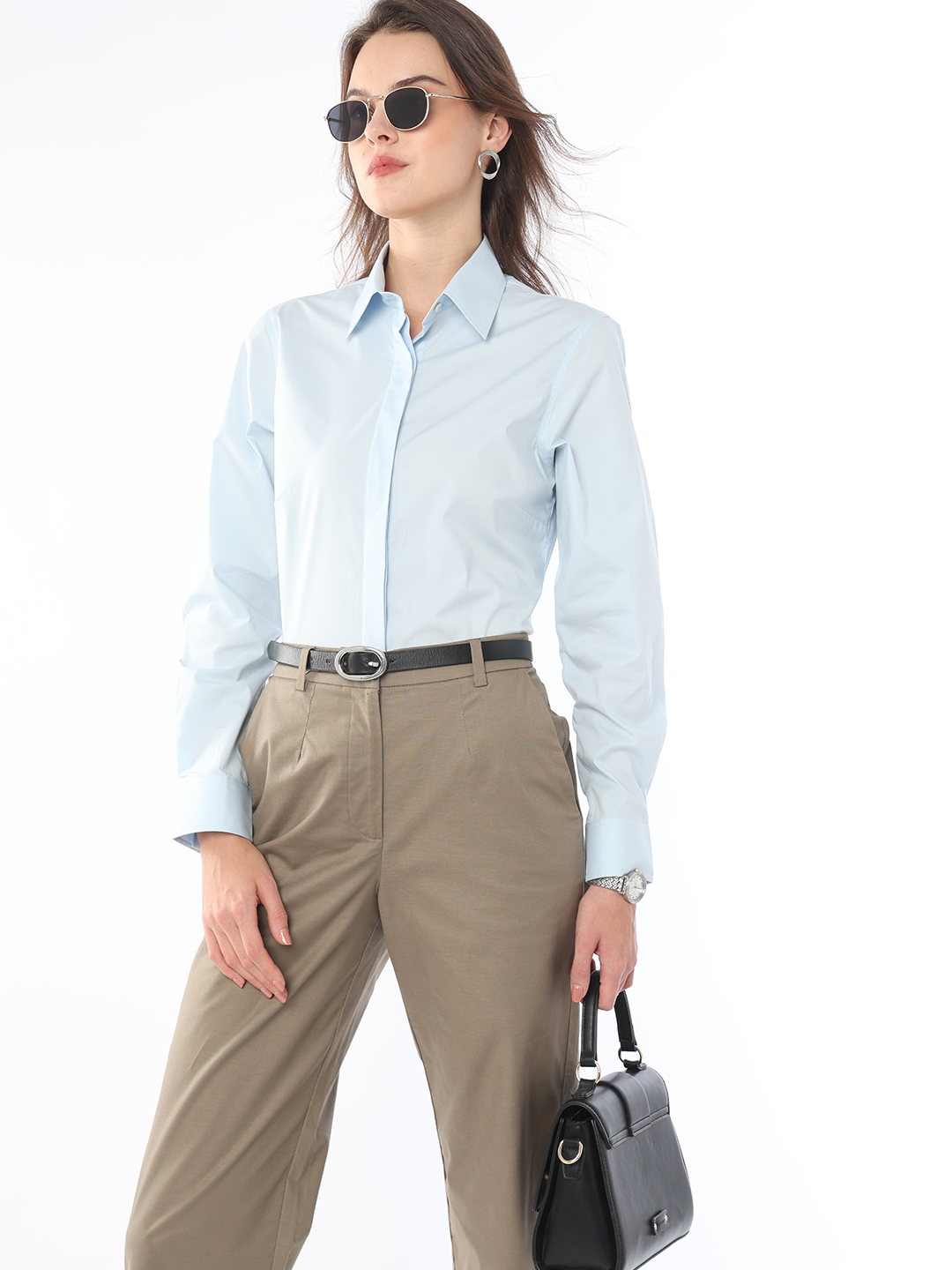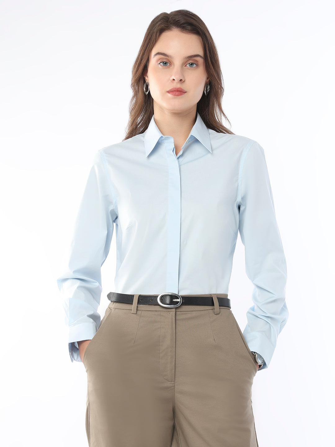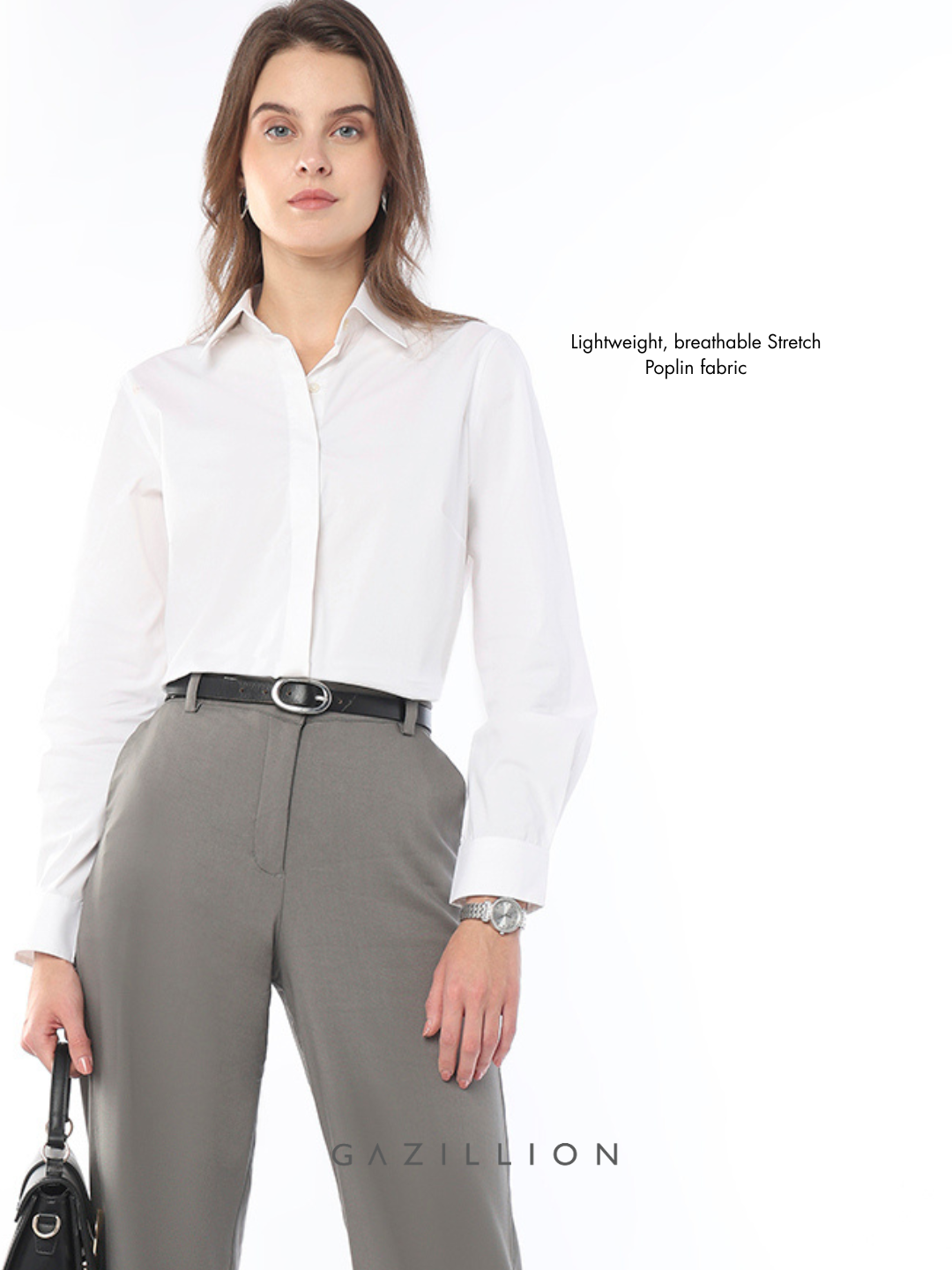 That Formal Cotton Shirt, crafted in premium breathable cotton with a sharp, structured finish, is a modern wardrobe essential for refined dressing. Designed with a slimmer, silhouette inspired by classic tailoring, it delivers a crisp, confident look that transitions seamlessly from a crisp daily look when worn just as is, to a boardroom look teamed with a blazer. When you wear it, you project quiet authority and timeless elegance with every detail perfectly in place.