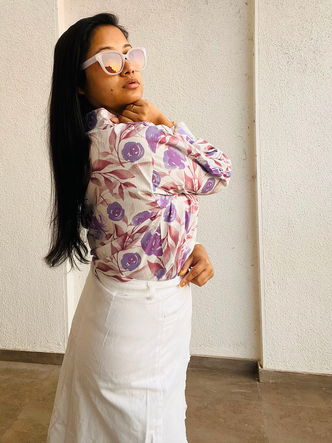 Benna Black & White Floral Print Viscose Linen Oversized Shirt