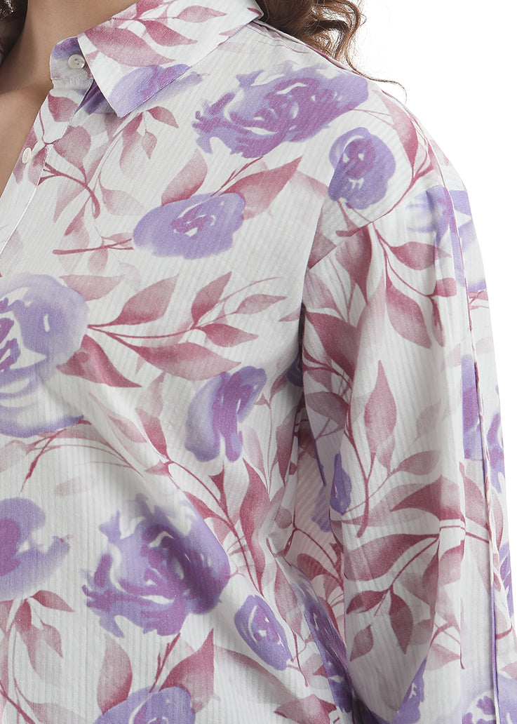 Bertie Lavender Floral Print Cotton Casual Shirt