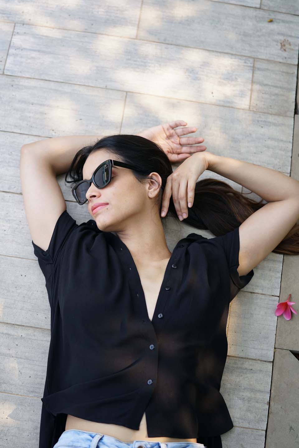 Benna Black & White Floral Print Viscose Linen Oversized Shirt