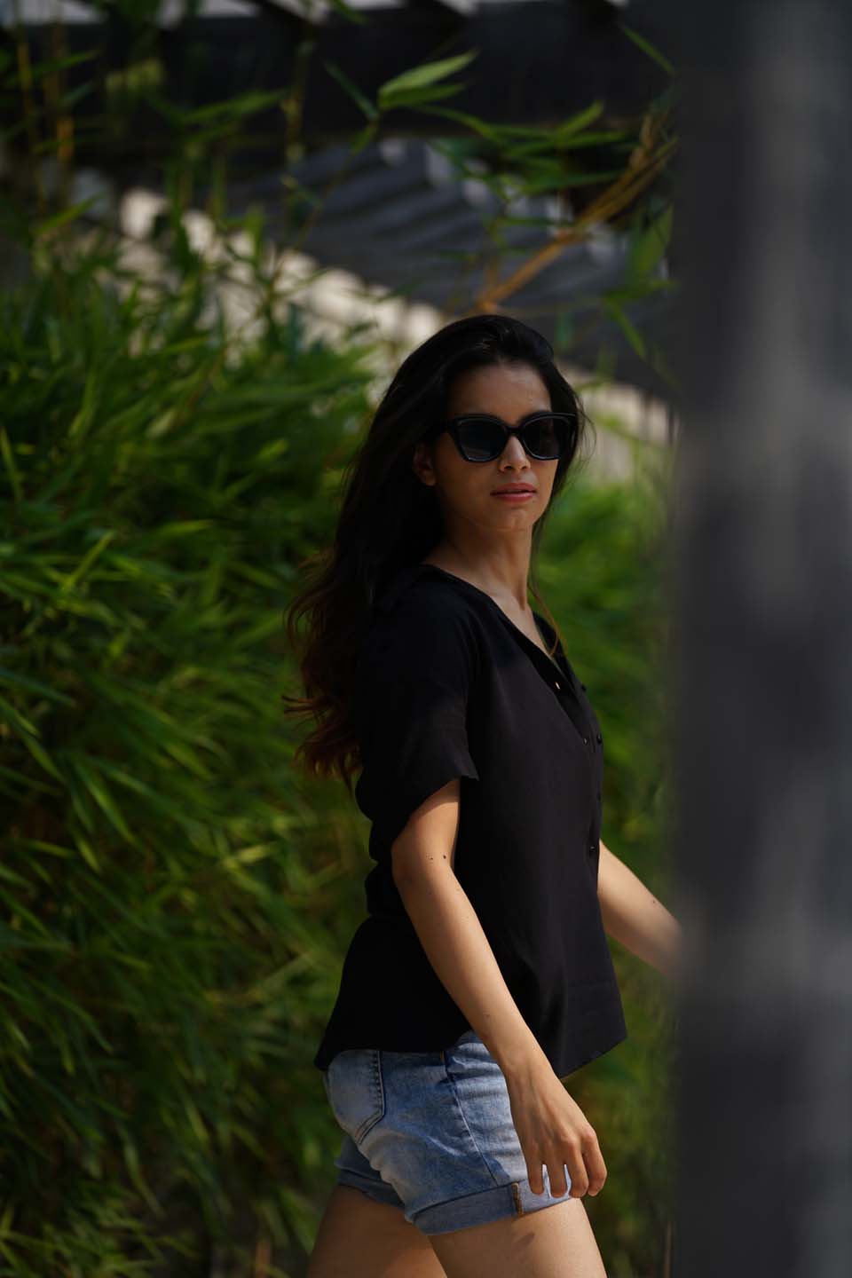 Edith Grey Stripes Cotton Short Sleeves Shirt