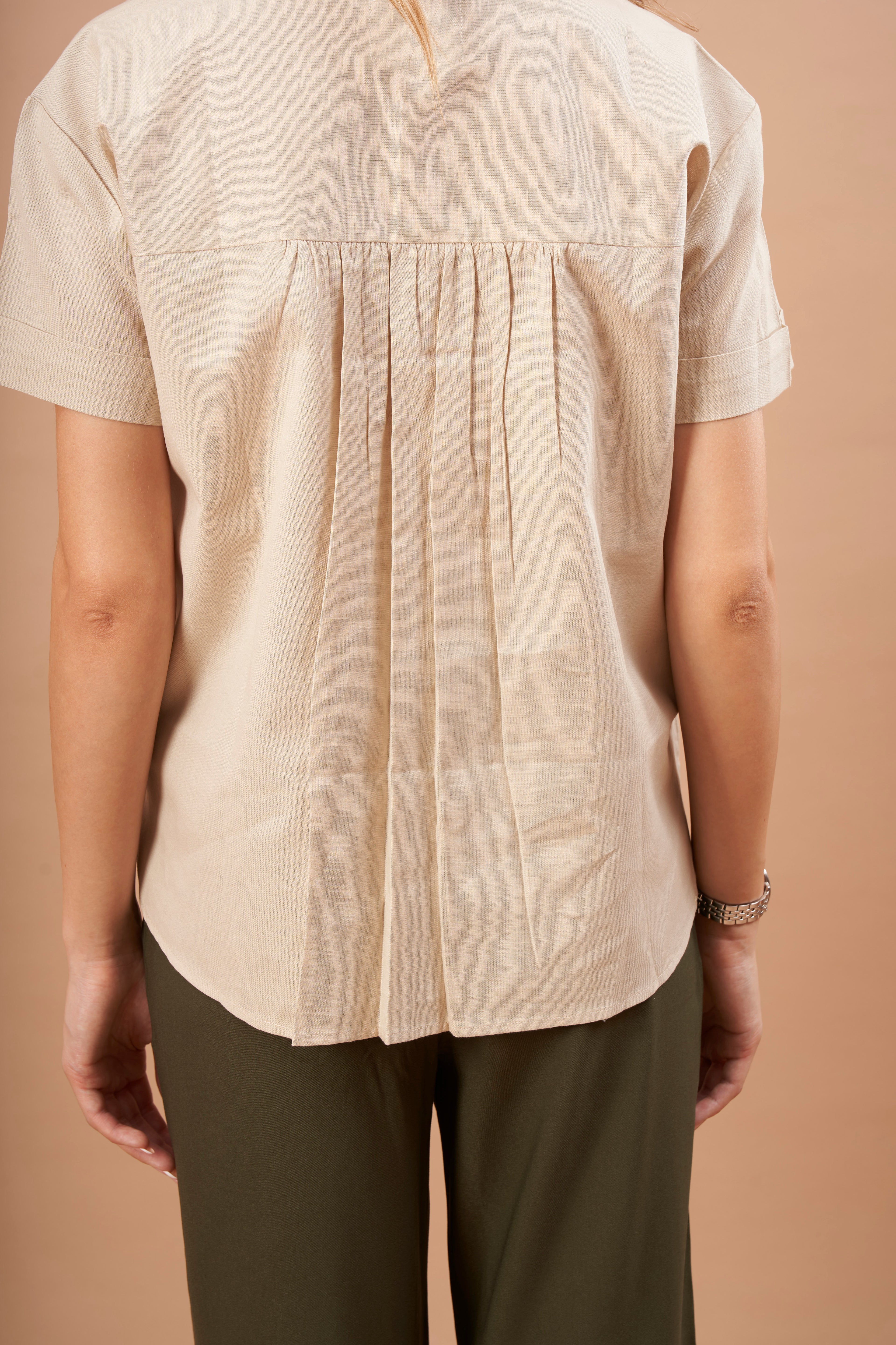 The Doll Formal Shirt, a half-sleeve classic in soft cotton linen, brings a refreshing touch to your office wardrobe. Its fresh hue and crisp silhouette reflect warmth and confidence, ensuring you stand out with effortless elegance and poise.