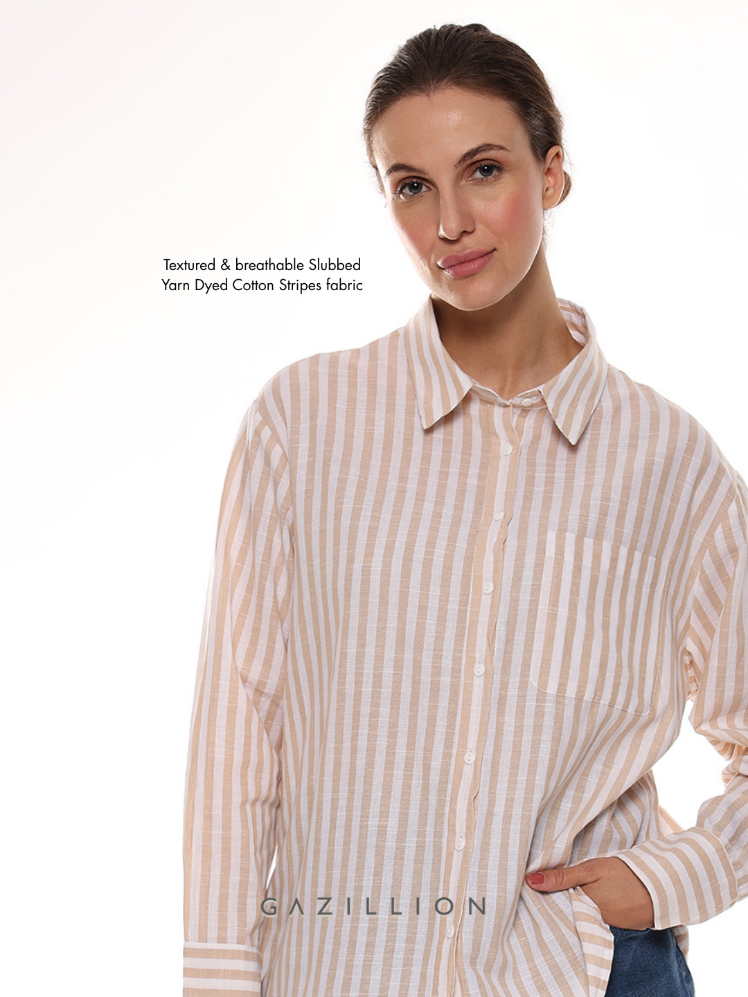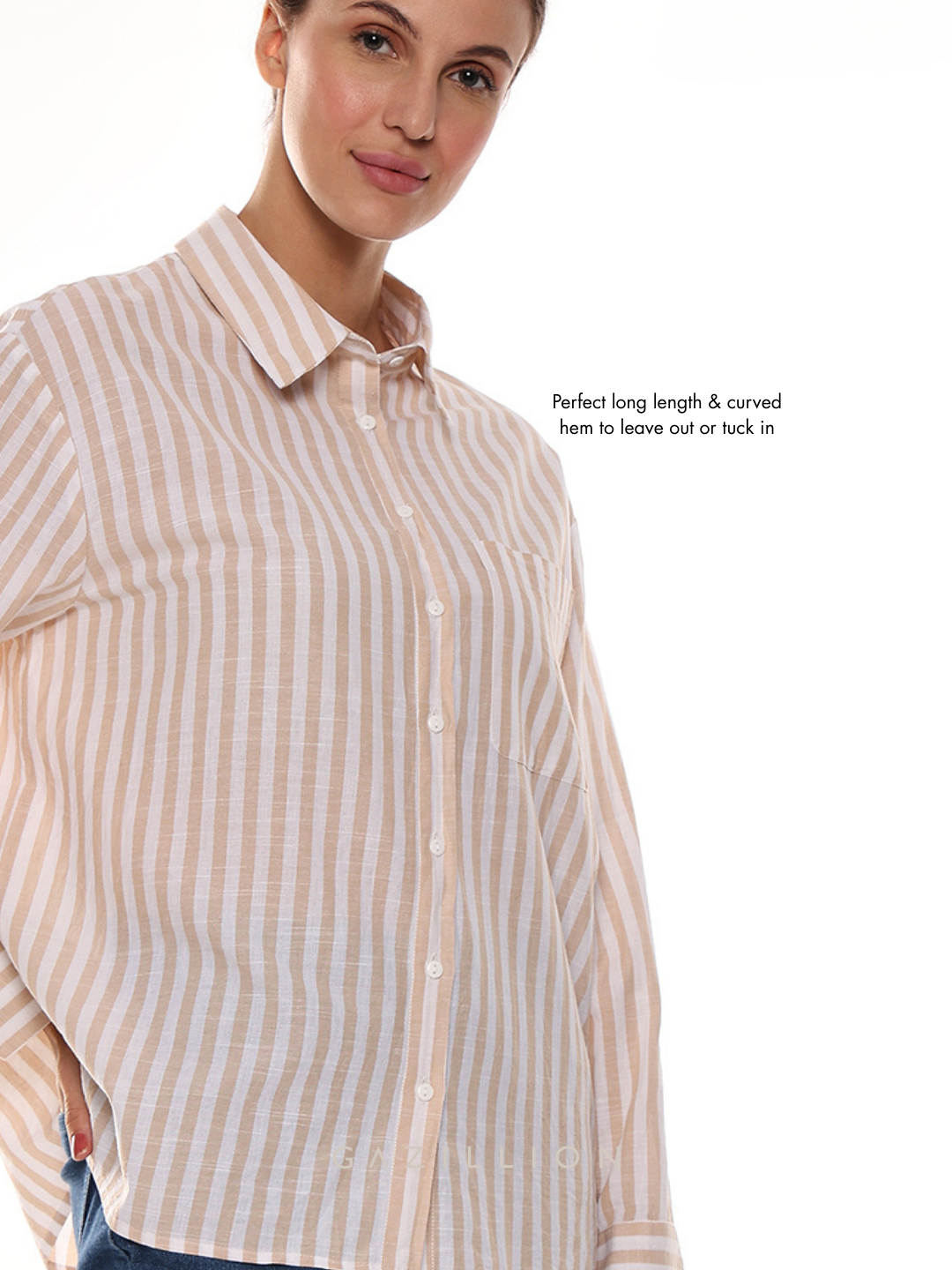 The Amanda Striped Oversized Cotton Shirt redefines casual chic with its timeless stripes. Made from soft cotton, this oversized shirt adds a classy touch to everyday wear, perfect for effortless styling.