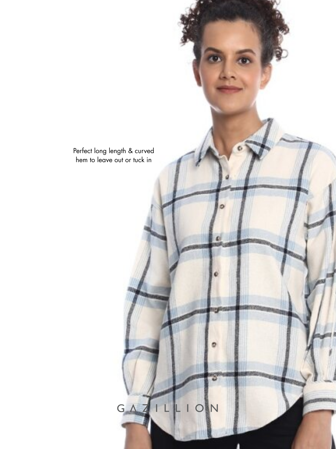 The Barbara Checks Shirt, made from soft brushed cotton with a drop-shoulder design, is a perfect fit for casual fashion. When you wear it, you embrace effortless style and comfort,
