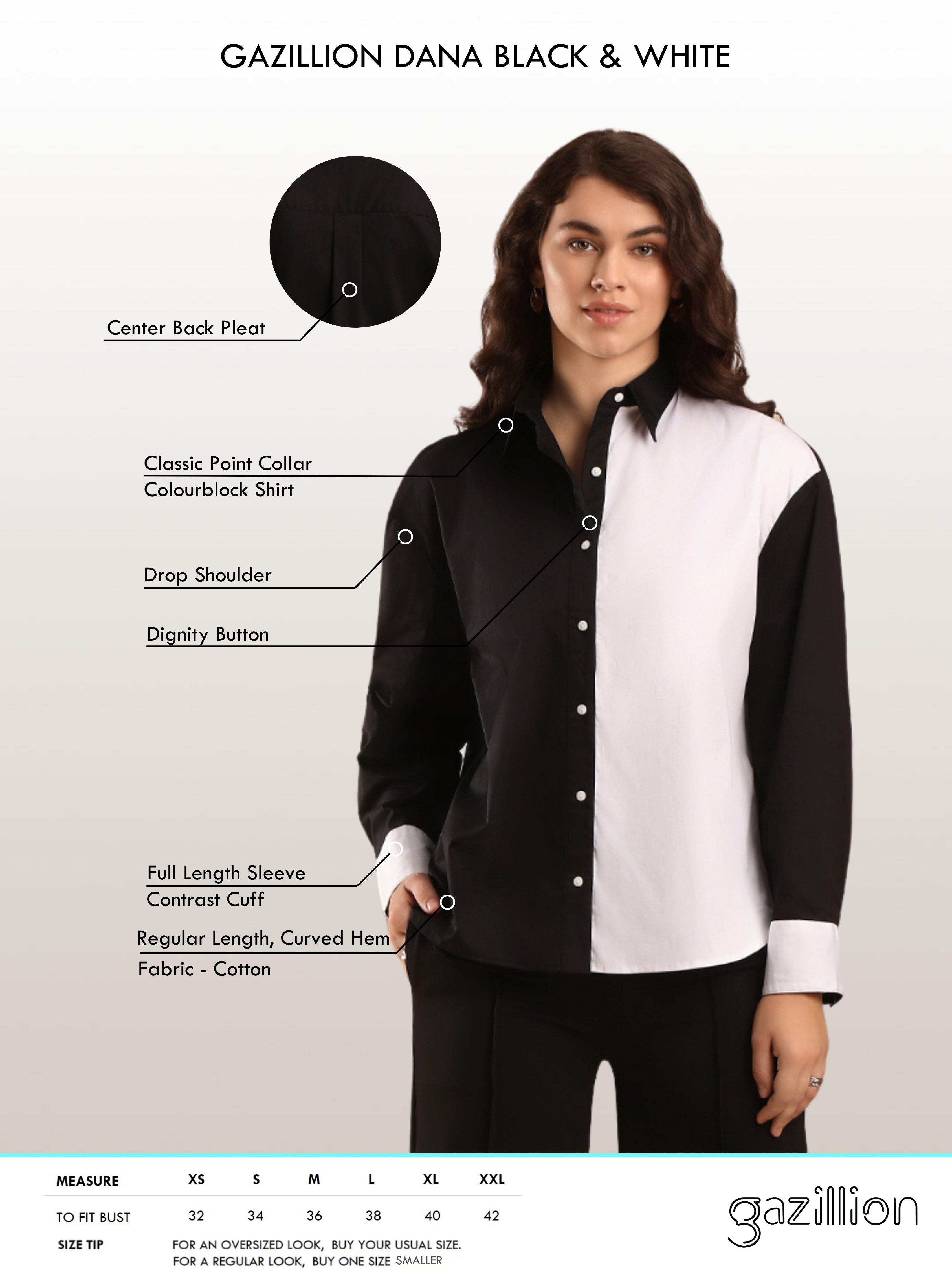 DANA BLACK & WHITE COLOUR BLOCKED COTTON SHIRT FOR WOMEN