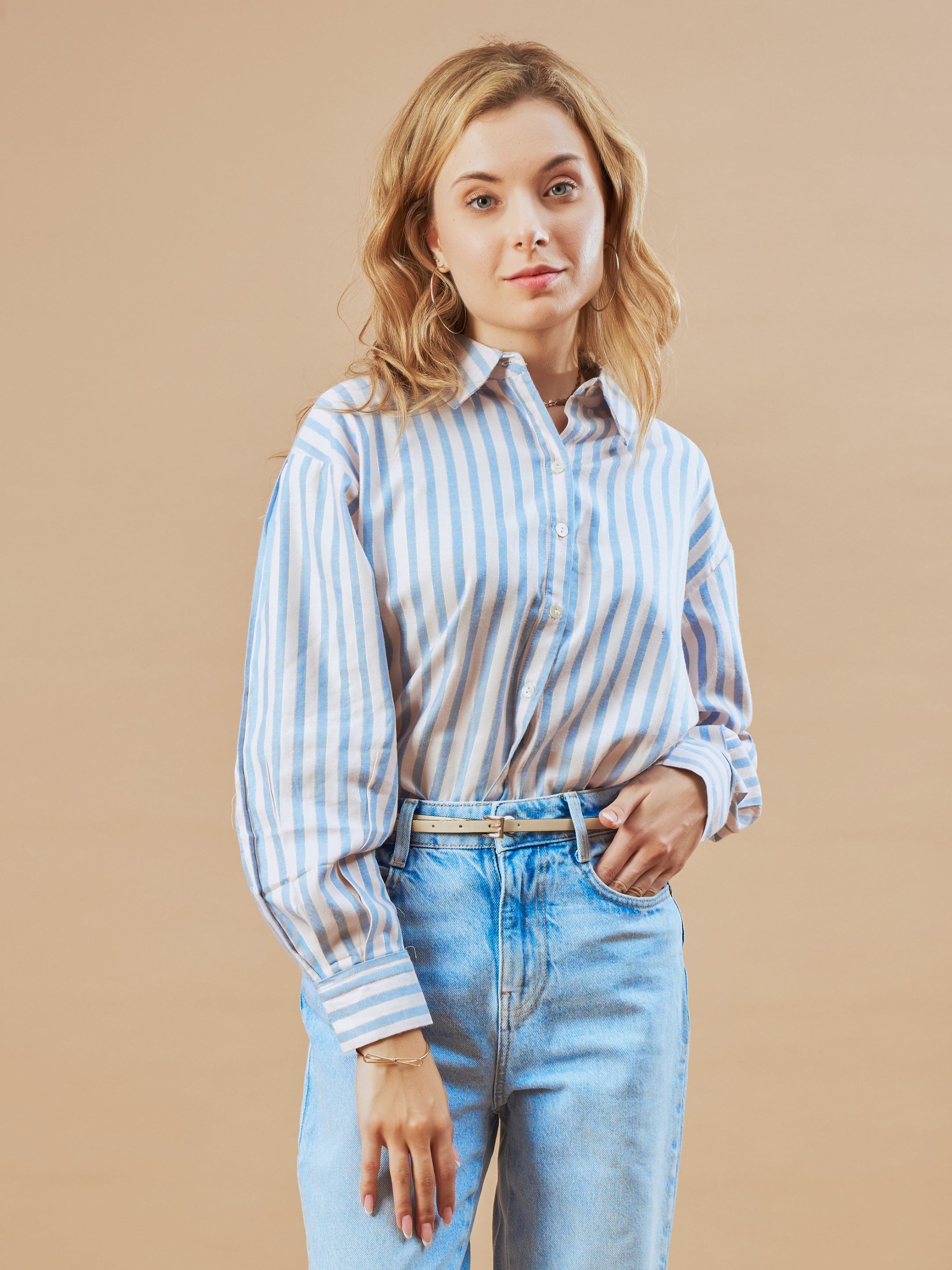 DARRYL PINK & BLUE STRIPED VISCOSE CASUAL SHIRT FOR WOMEN